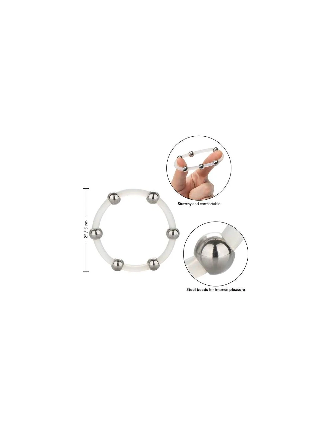 Diseñado para mejorar, intensificar e intensificar el éxtasis cada vez que te pones el anillo de silicona con cuentas de acero grande.