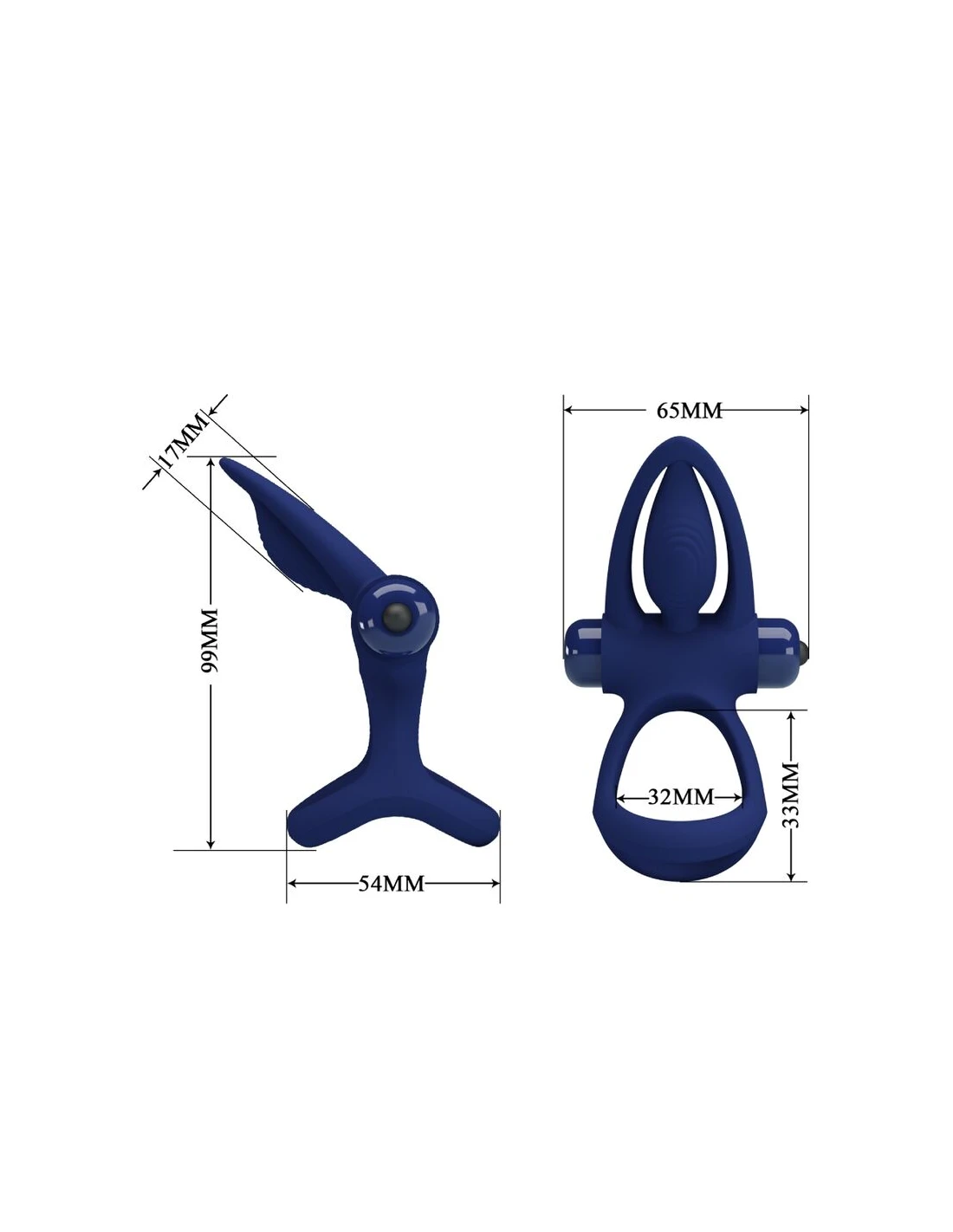 PRETTY LOVE - MAT DOBLE ANILLO CON VIBRACIÓN & ESTIMULADOR AZUL