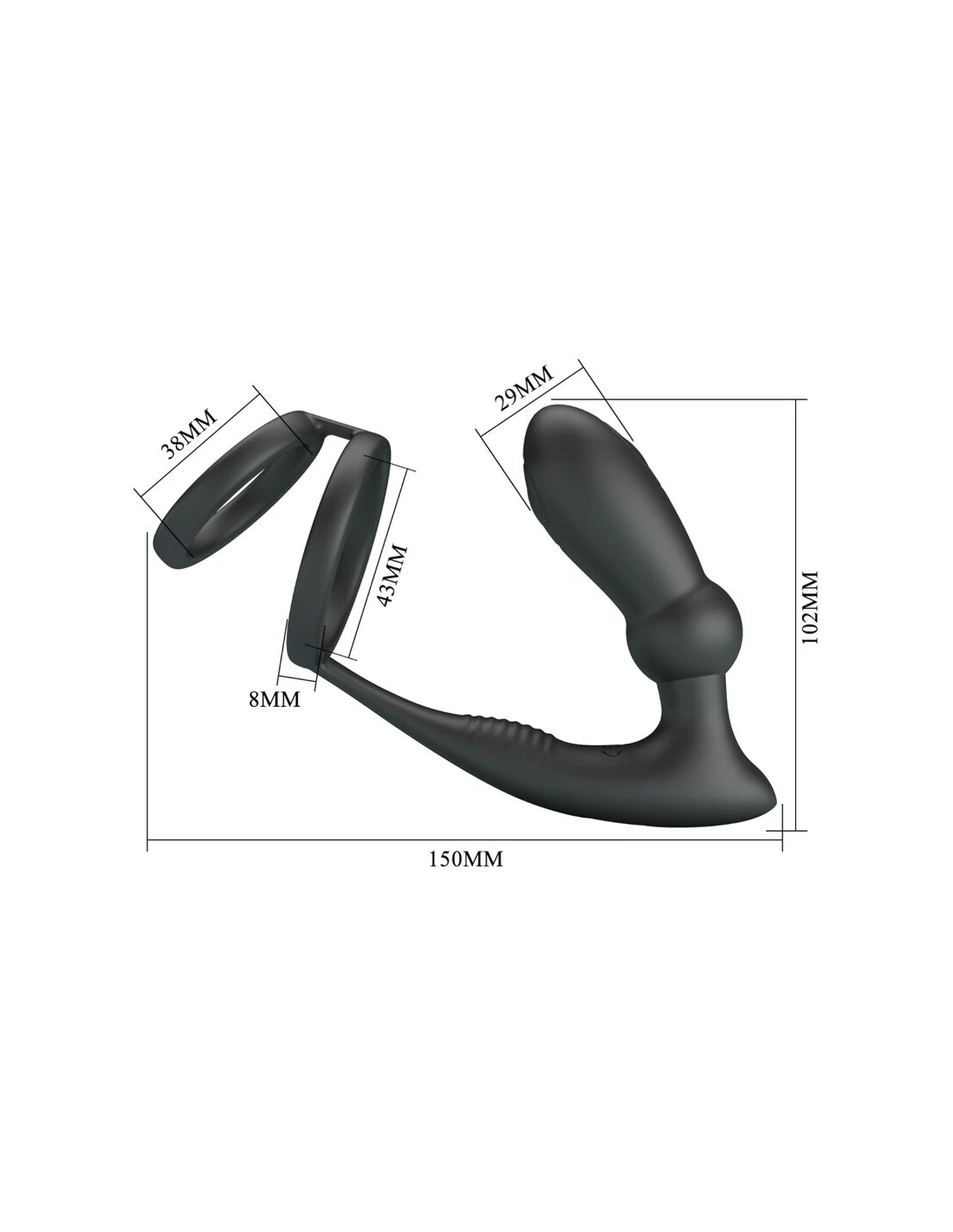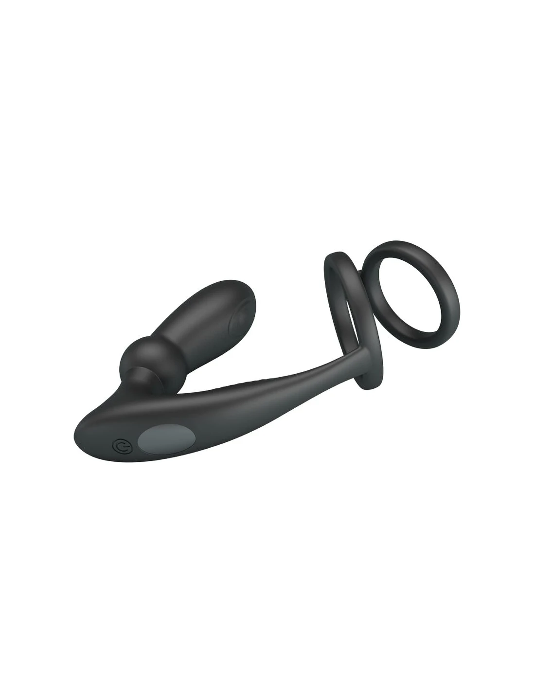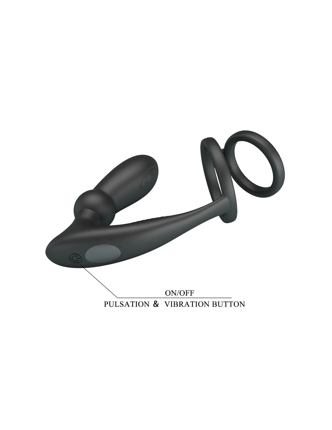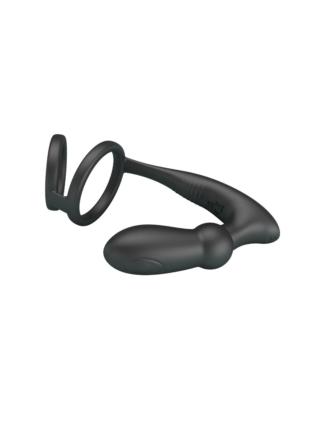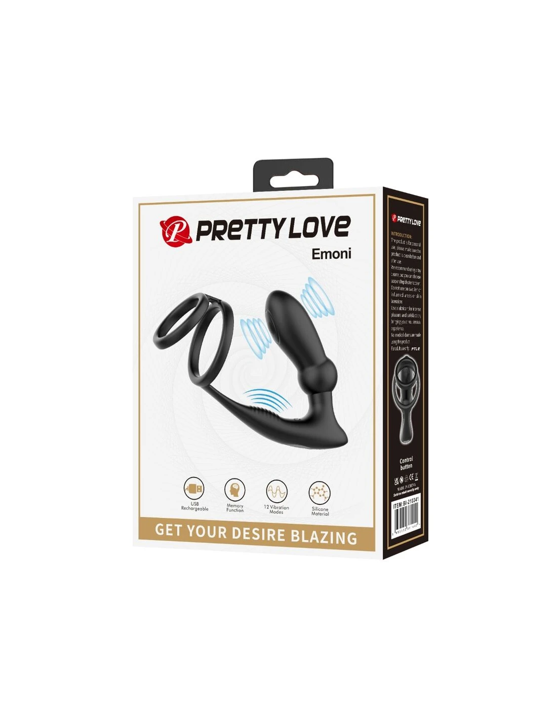 PRETTY LOVE - EMONI ANILLO PENE + PLUG ANAL 12 VIBRACIONES NEGRO
