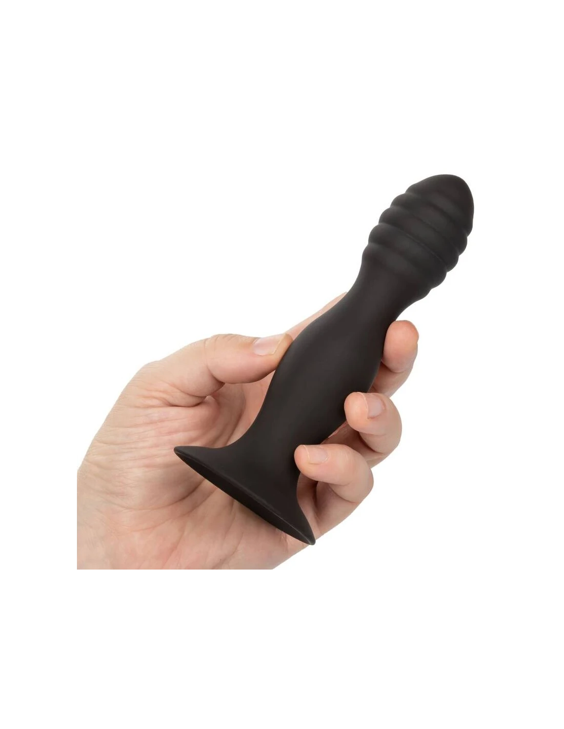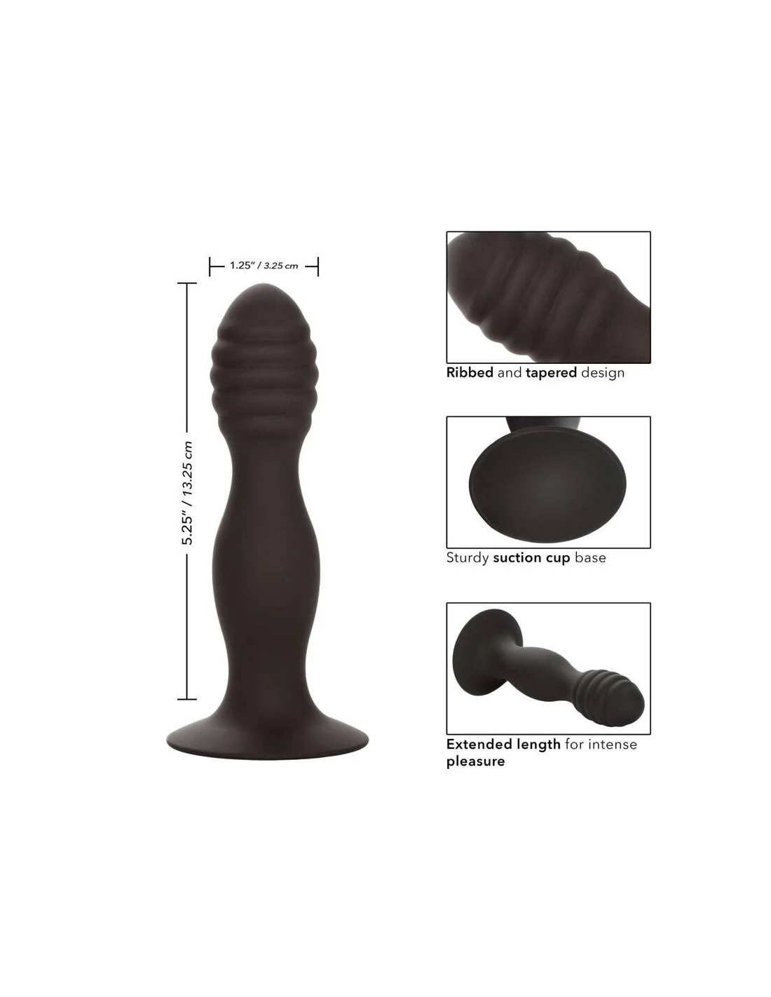 Desde principiantes boquianos hasta expertos eróticos, el semental anal acanalado de silicona de Calexotics seguramente emocionará a cualquier buscador de placer de puerta trasera. La sonda de silicona prácticamente perfecta tiene una punta acanalada, cabeza acentuada y potente base de succión. El cuerpo ondulado y la punta acanalada seguramente golpearán el lugar correcto, cada vez. La base con bridas tiene una resistente taza de succión que se puede usar en un arnés o montada en una superficie plana para una sensacional diversión manos libres. La sonda flexible está hecha de una silicona suave y perfecta. El material seguro para el cuerpo no tiene perfume y no tiene ftalato para mantener sus puntos más sensibles felices y saludables .