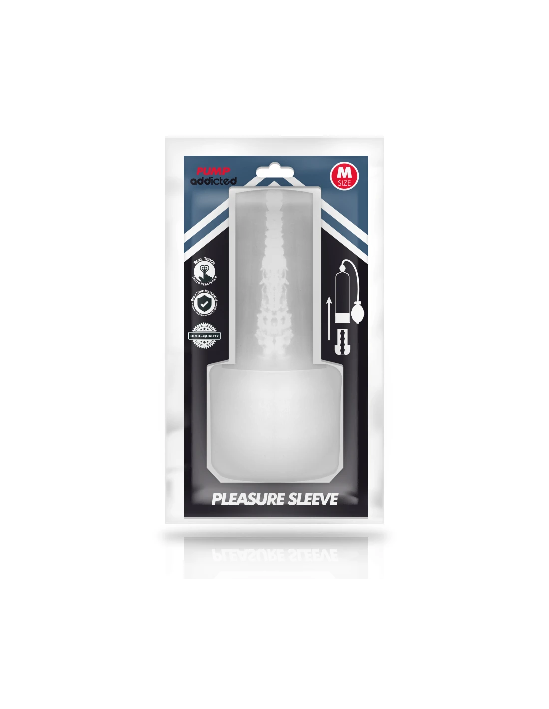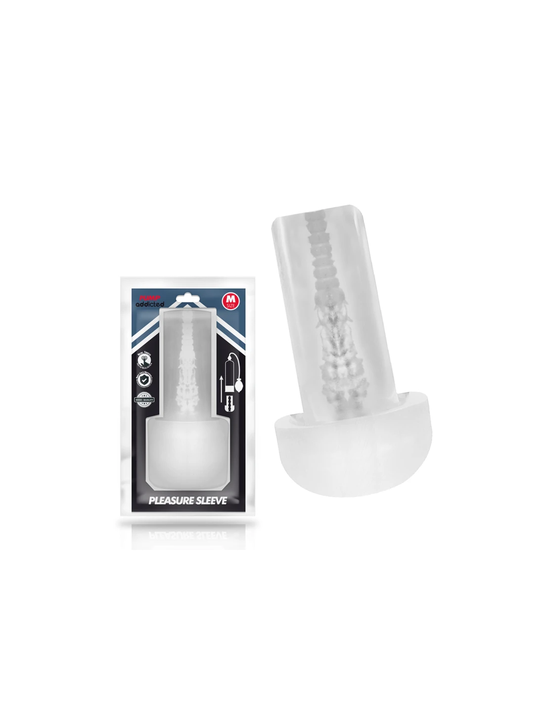 ¡Te encanta verte en acción, y ahora puedes hacerlo con el masturbador pleasure Sleeve mientras utilizas tu PUMP ADDICTED! Presta atención a como cada centímetro de tu pene penetra este masturbador transparente ultra estrecha y has realidad tus perversas fantasías más voyeuristas. Tendrás la sensación de estar penetrando una suave vagina o ano (según el modelo) y además podrás observar como el masturbador transparente de acaricia con su textura interior creando un efecto de succión, aumentando tu estimulación y masajeando tu pene con cada golpe, mientras que el realístico material con el que está fabricado (TPE) envuelve cada milímetro de tu pene como un amante real. Hazle el amor a esta vagina hasta que explotes, para a continuación ver como fluyen tus fluidos en su interior.