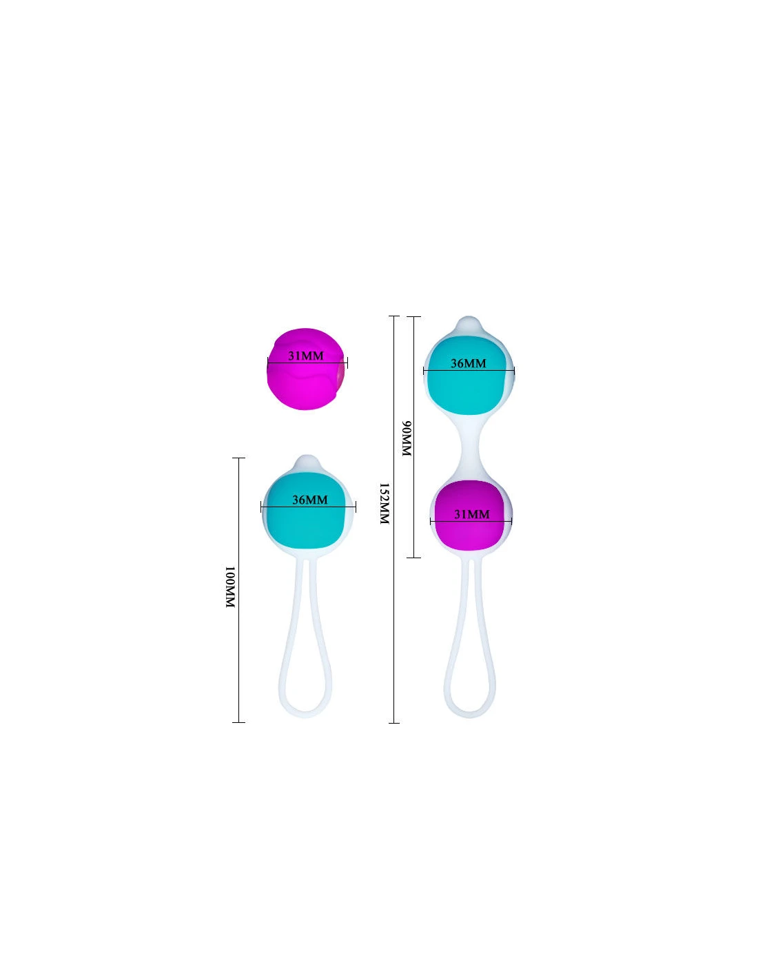 - Las Bolas de Pretty love tiene un diámetro de 3,75 cm. Y una longitud total de 15.25 cm. incluida la cuerda para retirar la bola china.