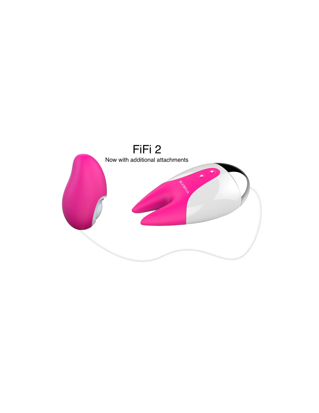 - 5. Para utilizar el accesorio de FiFi 2, conecte el accesorio en la base de FIFI 2 (Especificación - Punto 6. Si presionas rápidamente el botón“ ”, el vibrador se pondrá en modo manual. Cada vez que pulses el botón“ ”cambiará el modo de vibración, pasando por todos ellos