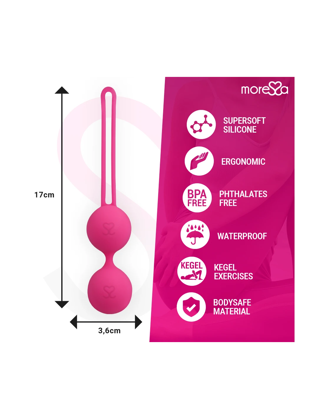 Las bolas Moressa son completamente lisas facilitando la inserción y produciendo sensación de confort. Fácil de utilizar y limpiar, es una elección perfecta para una salud impecable de los músculos pélvicos.