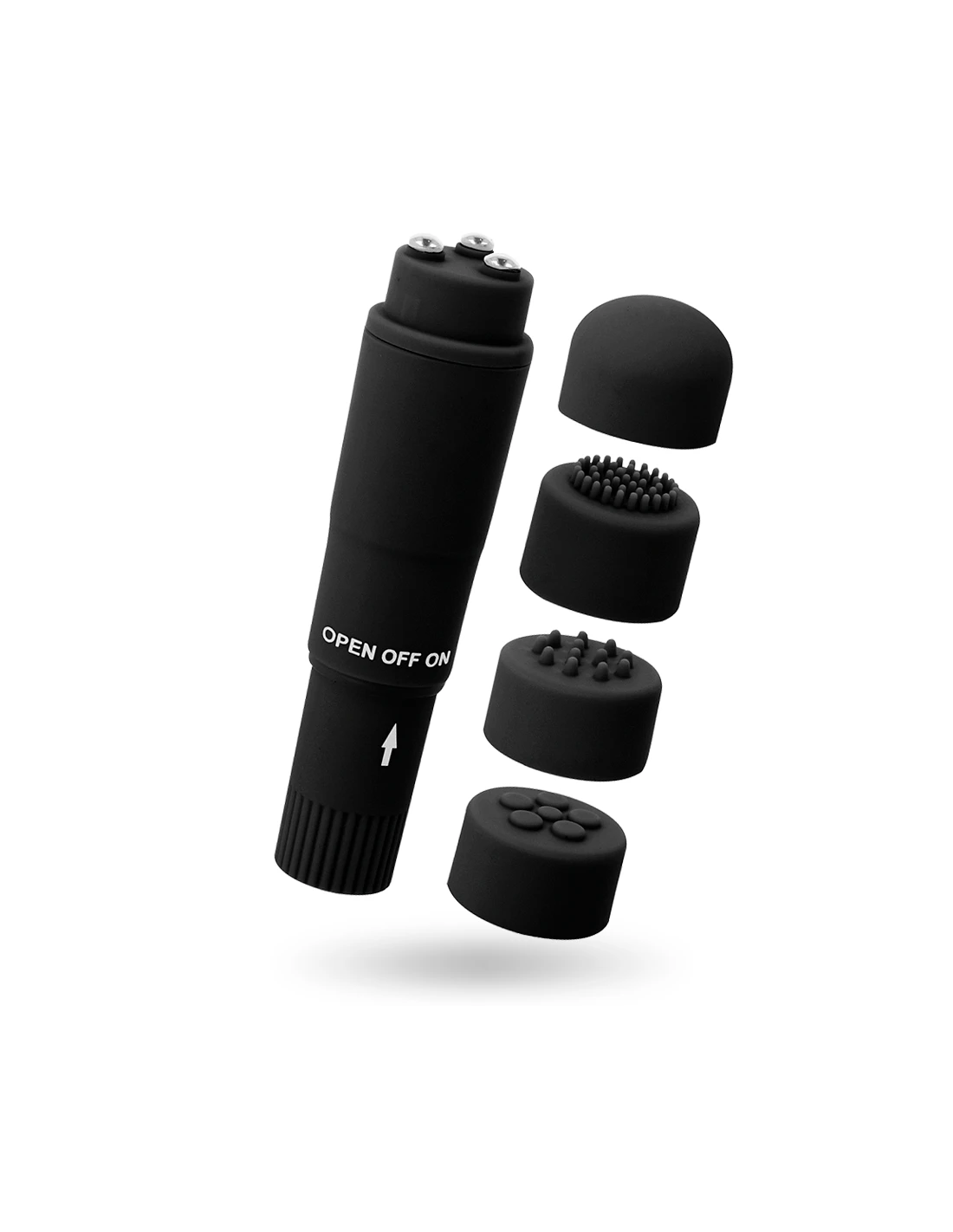 Este potente estimulador portátil hace lo que dice en el envase. Viene con 4 cabezales diferentes fácilmente intercambiables para vivir distintos estímulos. A veces lo único que necesitas es una velocidad. Este pequeño estimulador está hecho de ABS con recubrimiento de poliuretano.