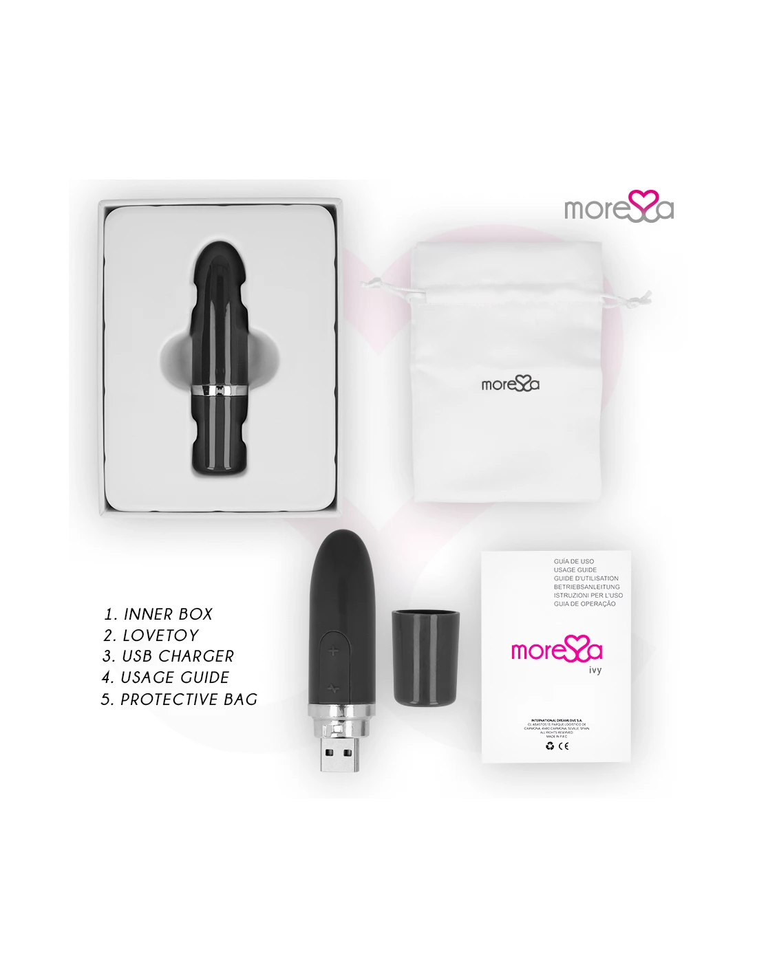 Como ocurre con todos los objetos de placer MORESSA, Ivy está diseñado para proporcionar un intenso gozo físico y una absoluta paz espiritual en cualquier situación y bajo cualquier circunstancia.