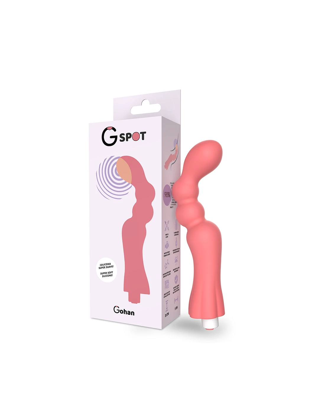 A pesar de su aspecto peligrosamente atractivo, Gohan es muy dócil. Con el ergonómico cabezal que estimula el Punto G salvajemente y la tecnología. Con la excitante introducción paso a paso, este vibrador del punto G despierta en mujeres y hombres un instinto depredador. La punta curvada de Gohan estimula perfectamente el punto G de la mujer o el punto P del hombre, la próstata.
