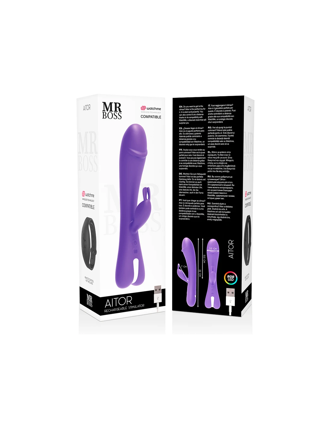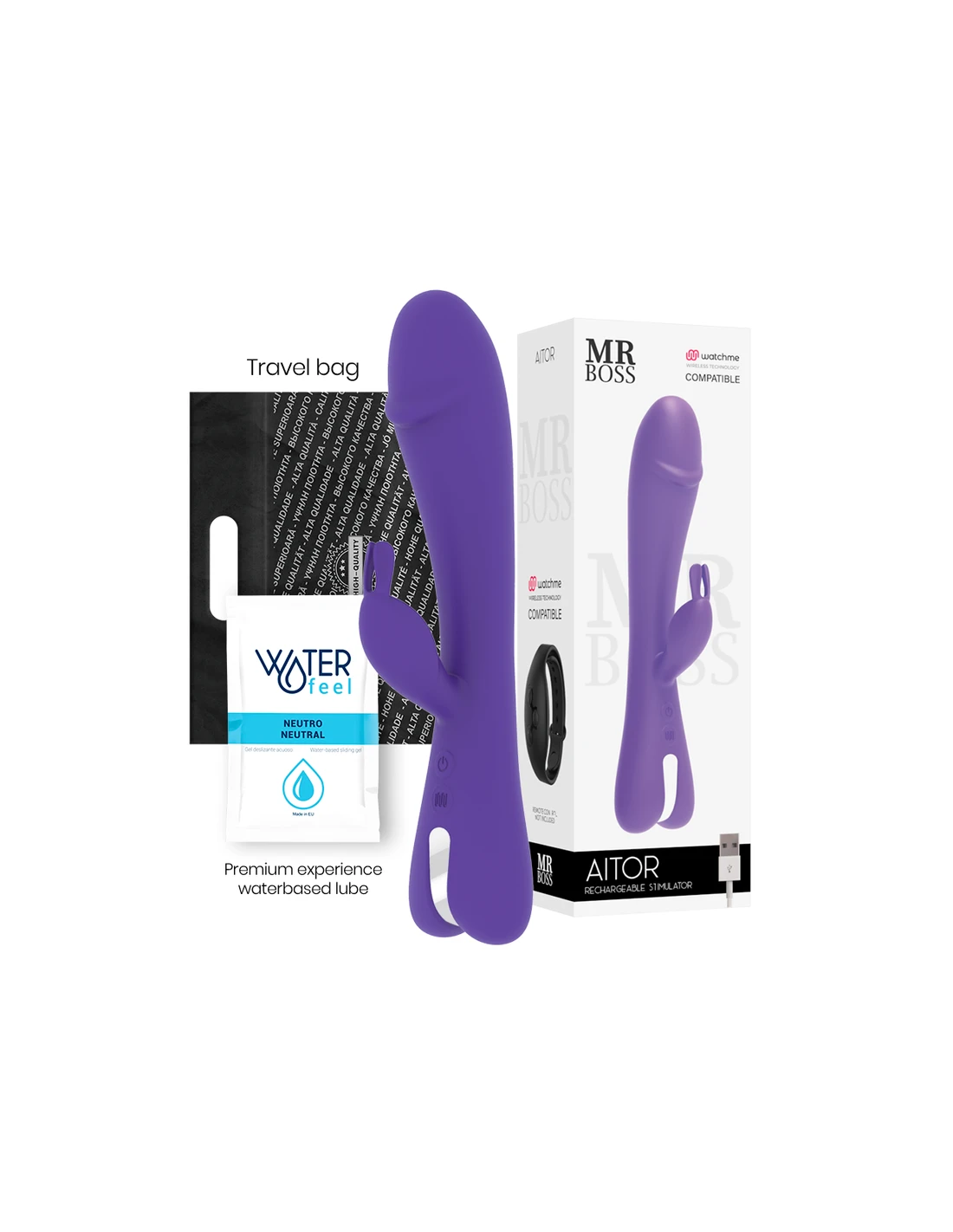 Aitor, estimula simultáneamente clítoris y vagina. Un rabbit elegante con dos potentes motores que dejan transmitir la esencia que inspira este juguete, placer y éxtasis. 10 patrones de vibración de suave a fuerte. Su terminación superior realística invoca la estimulación del punto G mientras que el brazo inferior acaricia el clítoris aplicando la justa presión. Suave tacto de silicona que proporciona vibración incluso debajo del agua.