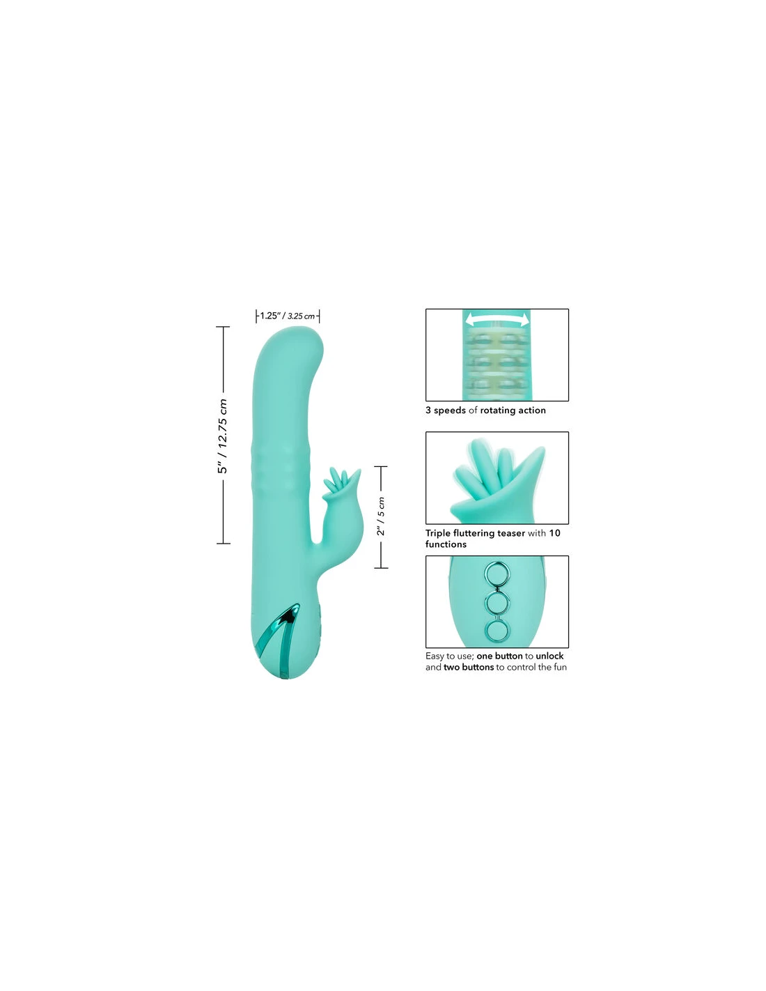 - Potente masajeador vibratorio y giratorio más teaser de triple aleteo