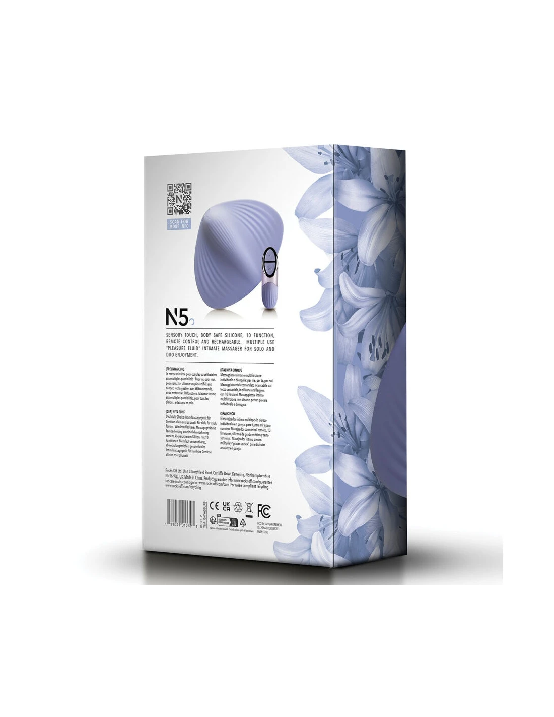 El Niya N5 de Rocks-Off es un masajeador íntimo versátil, moderno y ergonómico que se adapta cómodamente al cuerpo para ofrecer una experiencia de placer intensa y personalizada. Su diseño con textura ondulada y forma anatómica permite múltiples formas de uso, ya sea en solitario o en pareja.
