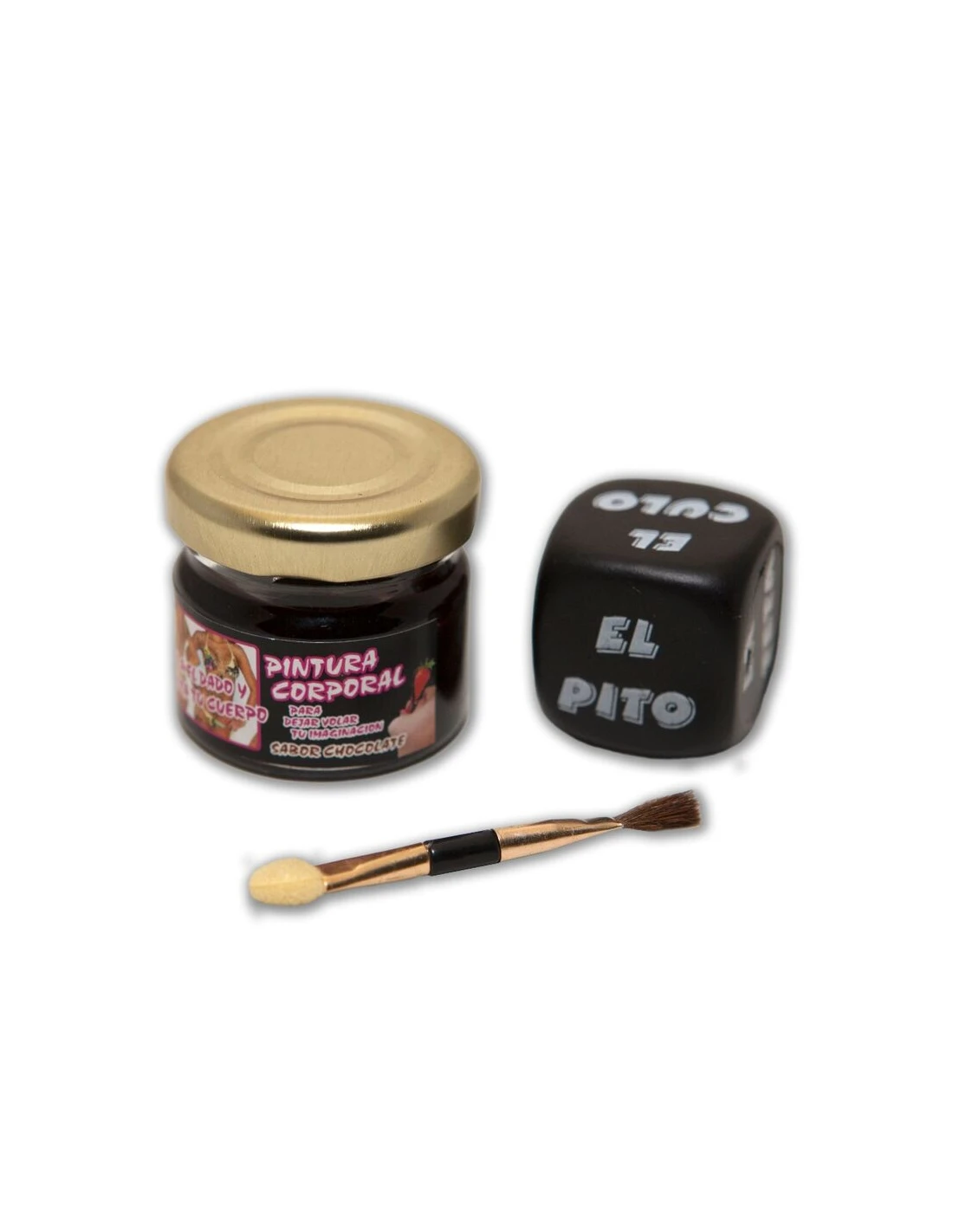 BOTE DE PINTURA COMESTIBLE SABOR CHOCOLATE MUY DELICIOSO, MÁS UN PINCEL Y UN DADO DE PARTES DE TU CUERPO, PARA DEJAR VOLAR TU IMAGINACION Y PASAR UNA NOCHE DE INOLVIDABLE LUJURIA.