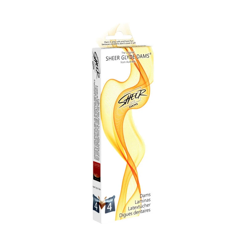 Sheer Glyde Dams son lamimas sedosas y finas de látex de 25cm x 15cm especialmente diseñadas como barrera para el uso del sexo oral.