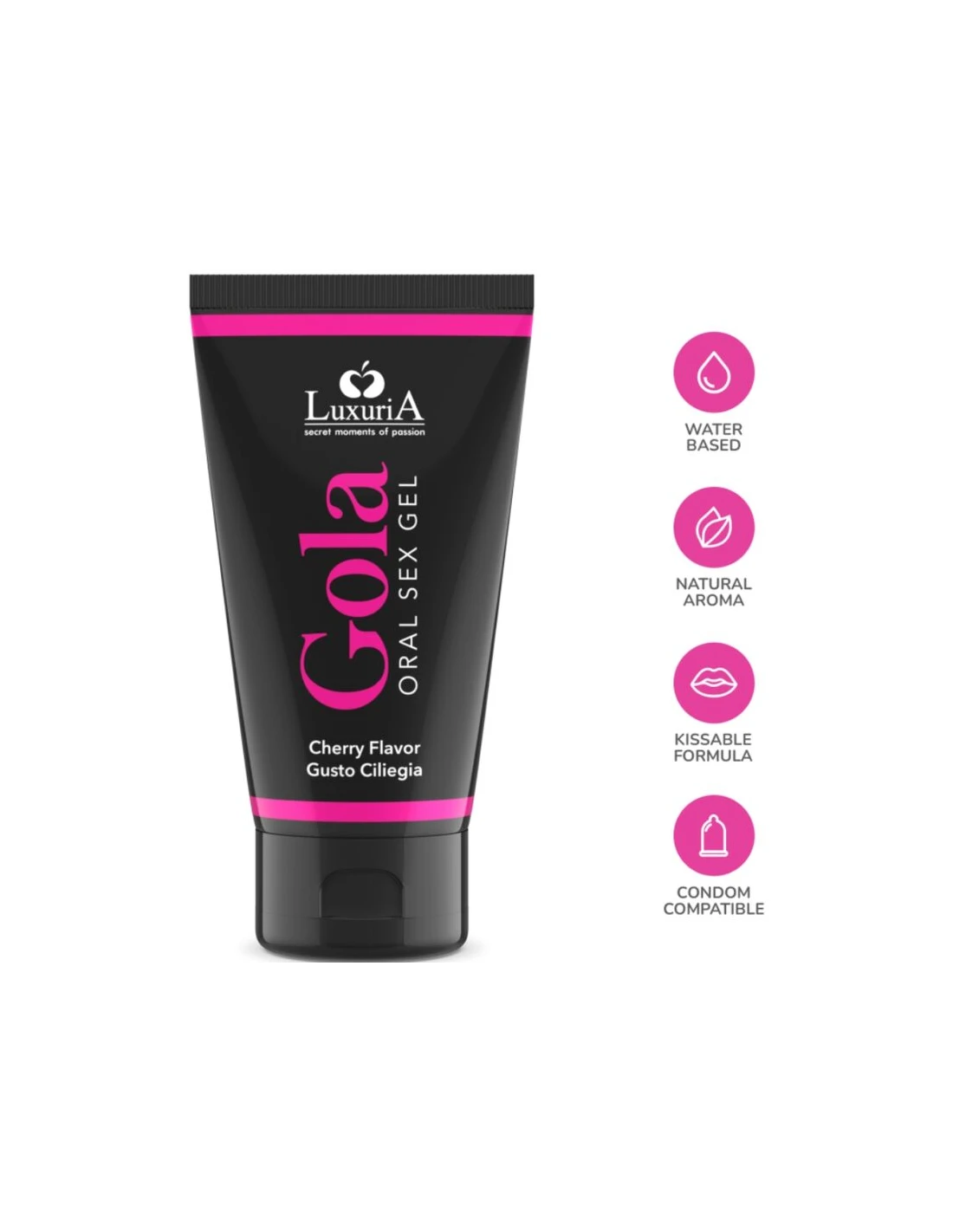 Gola Oral Pleasure cereza es un gel comestible para sexo oral con un aroma cautivador y sensual, que combina la acción hidratante y suavizante del azúcar con la acción regeneradora de los extractos de frutas naturales. Sabroso y provocativo, es particularmente ideal donde se aprecian sabores íntimamente alternativos. Especialmente indicado para despertar tu imaginación y agregar un toque de sabor a tus momentos más íntimos. Se puede usar de forma segura con objetos y dispositivos de látex, su fórmula garantiza una compatibilidad total con los condones.