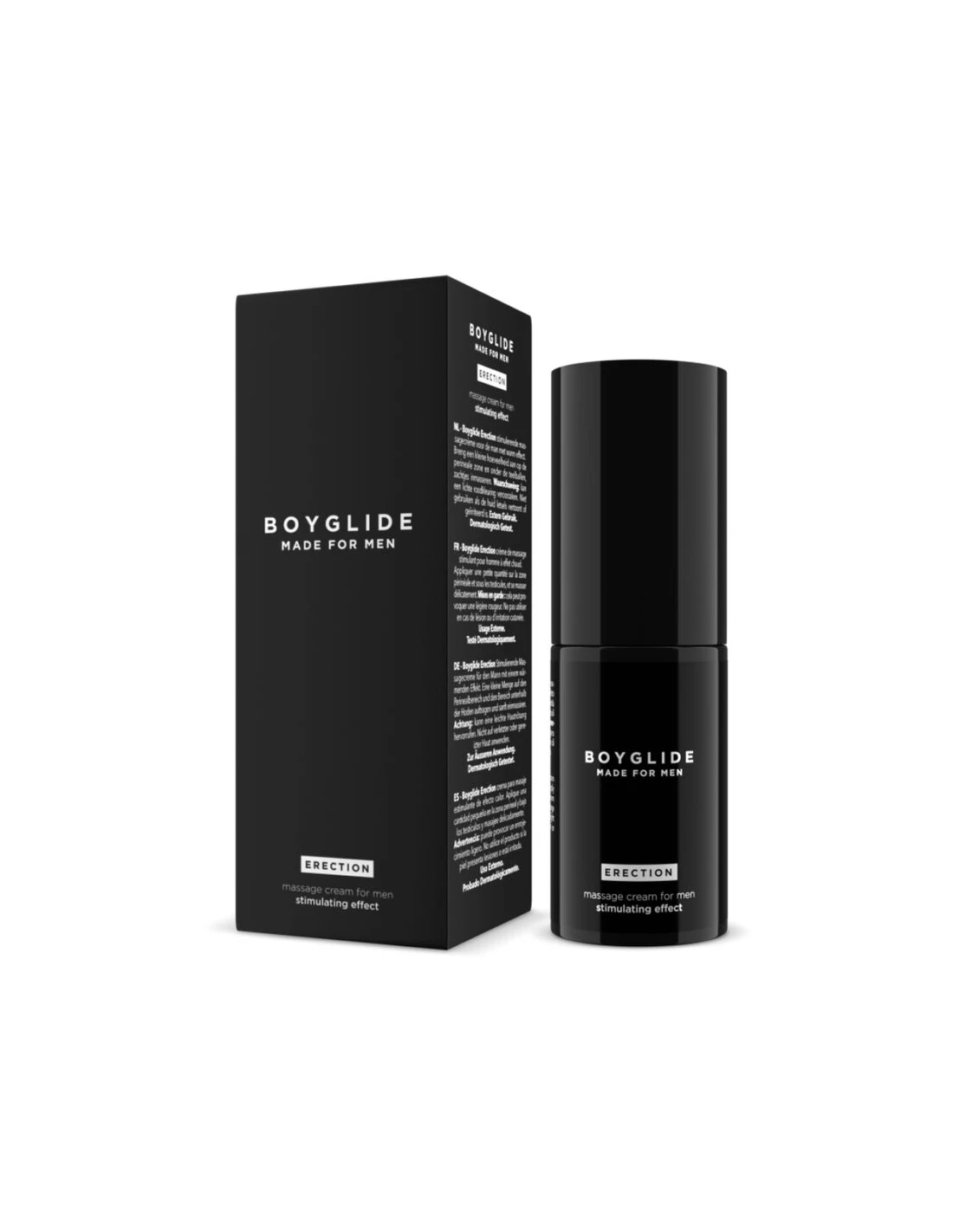Boyglide Erection cream es una crema súper activa con propiedades estimulantes y energizantes que la hacen ideal para masajear las partes íntimas masculinas. Ofrece un efecto estimulante inmediato que reactiva la circulación y reduce el cansancio al apoyar la erección del pene. Su fórmula de extracto natural significa que no requiere un masaje prolongado y está libre de contraindicaciones.