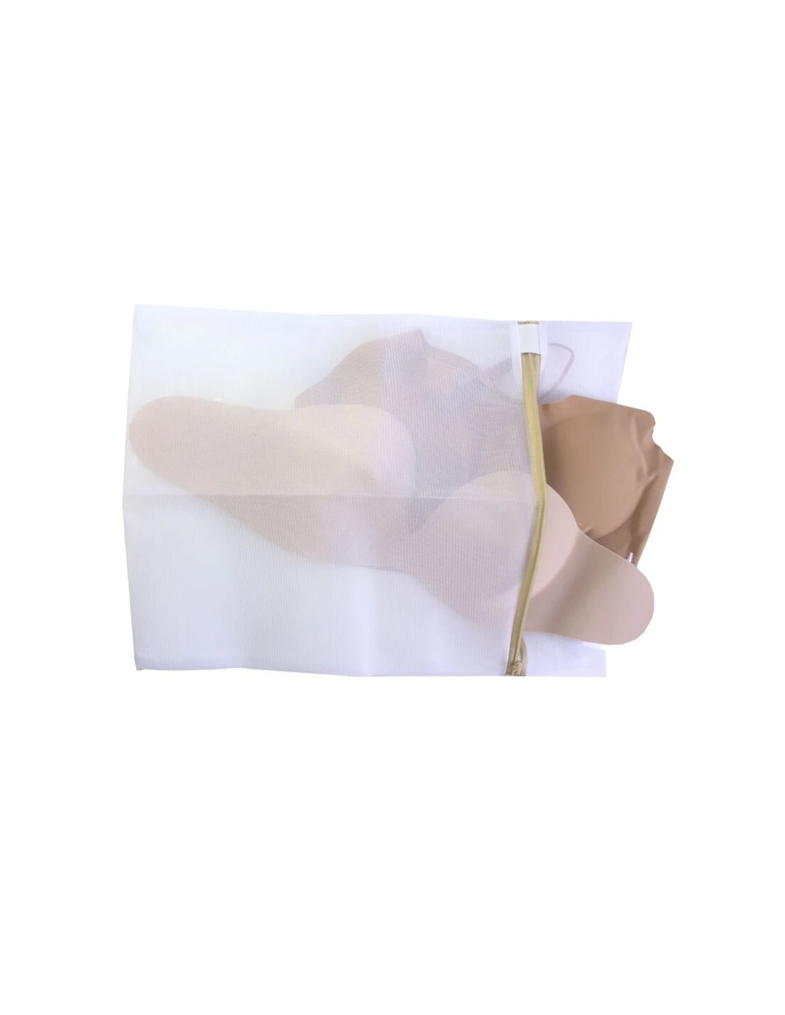El material de la bolsa de lavaje permite que el agua y el detergente se filtren, y a la vez que los ganchos y los tirantes sean protegidos durante el lavado y el secado. La forma de la bolsa de lavaje conserva las delicadas telas y mantiene la integridad estructural de las copas. La cremallera metálica no permite que las prendas se mezclen con el resto de la ropa.