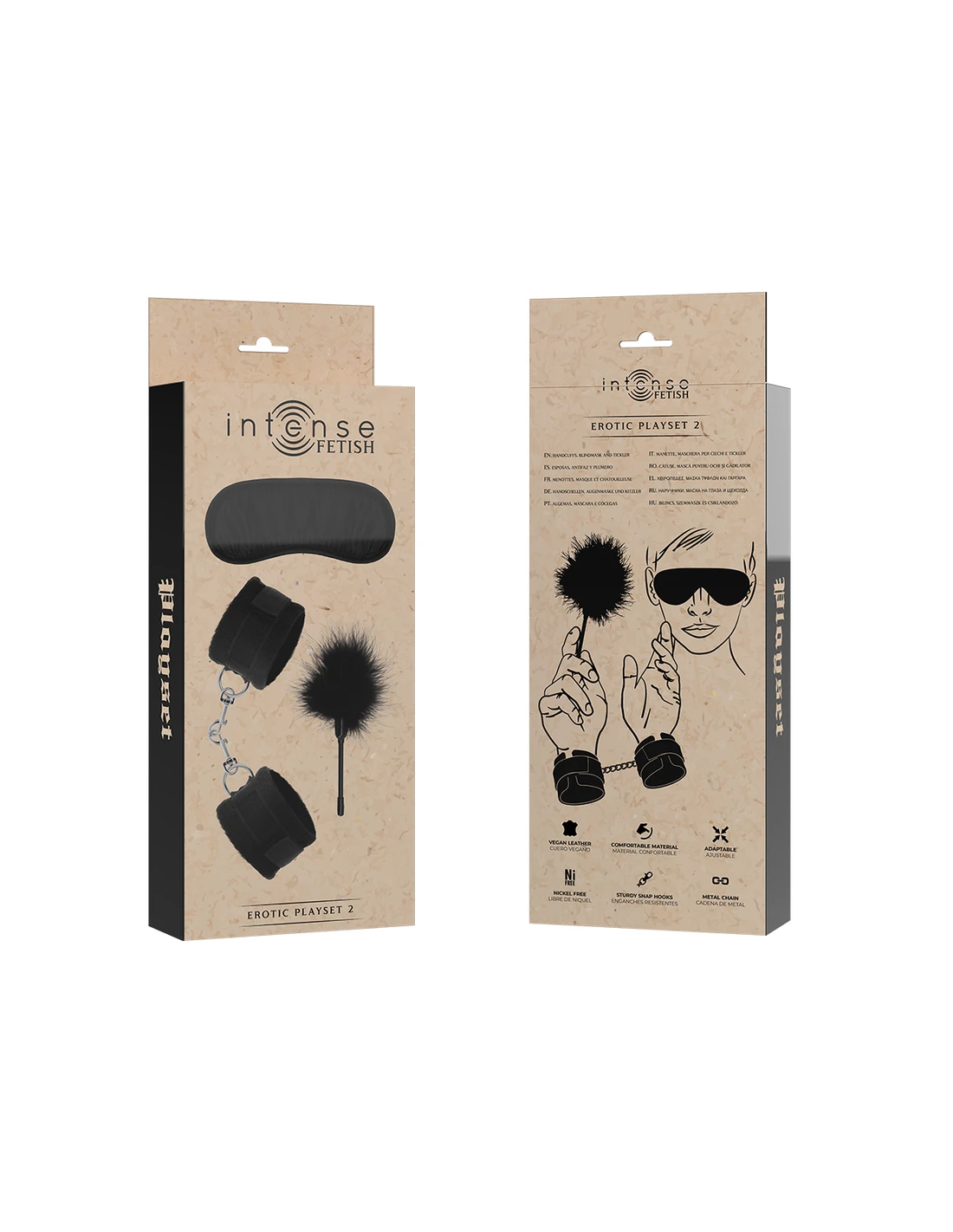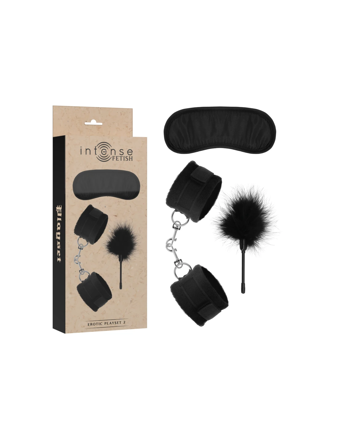 INTENSE - FETISH SET ERÓTICO 2 CON ESPOSAS, ANTIFAZ Y PLUMERO
