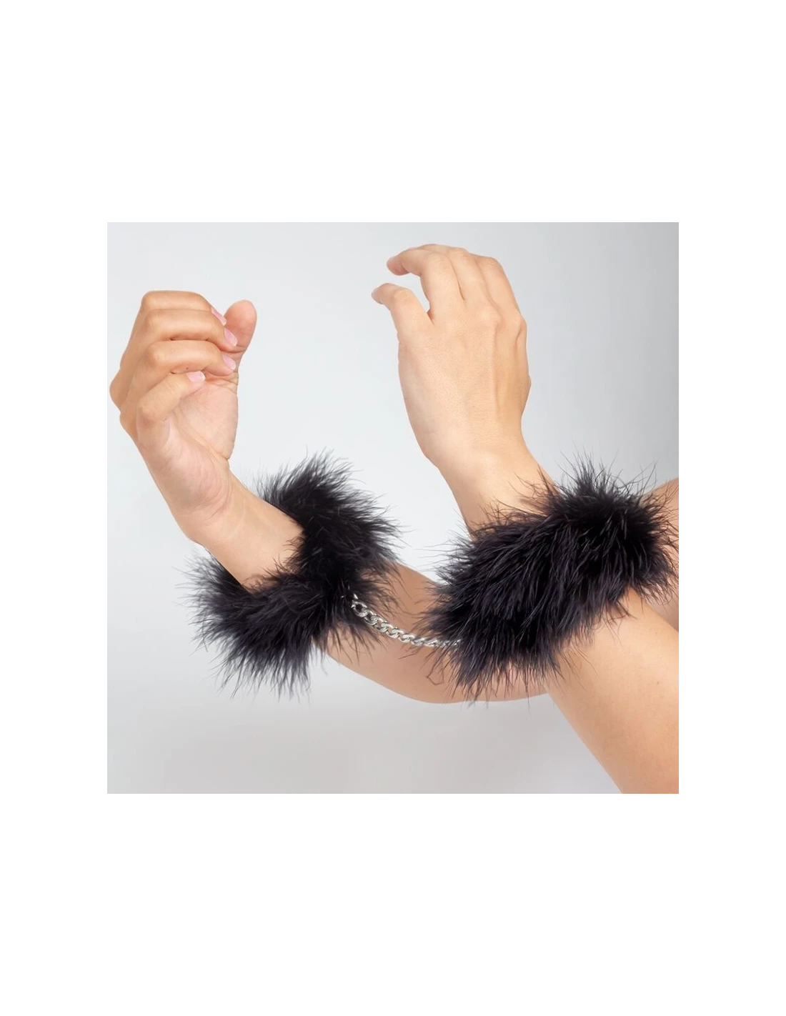 Las esposas están diseñadas para estimular fantasías y sugerir sumisión, pero no aprisionan como las esposas tradicionales. Diseñado en plumas sintéticas que unidas por una cadena de metal cromado, se abren y cierran con pequeños broches en los extremos de la cadena.