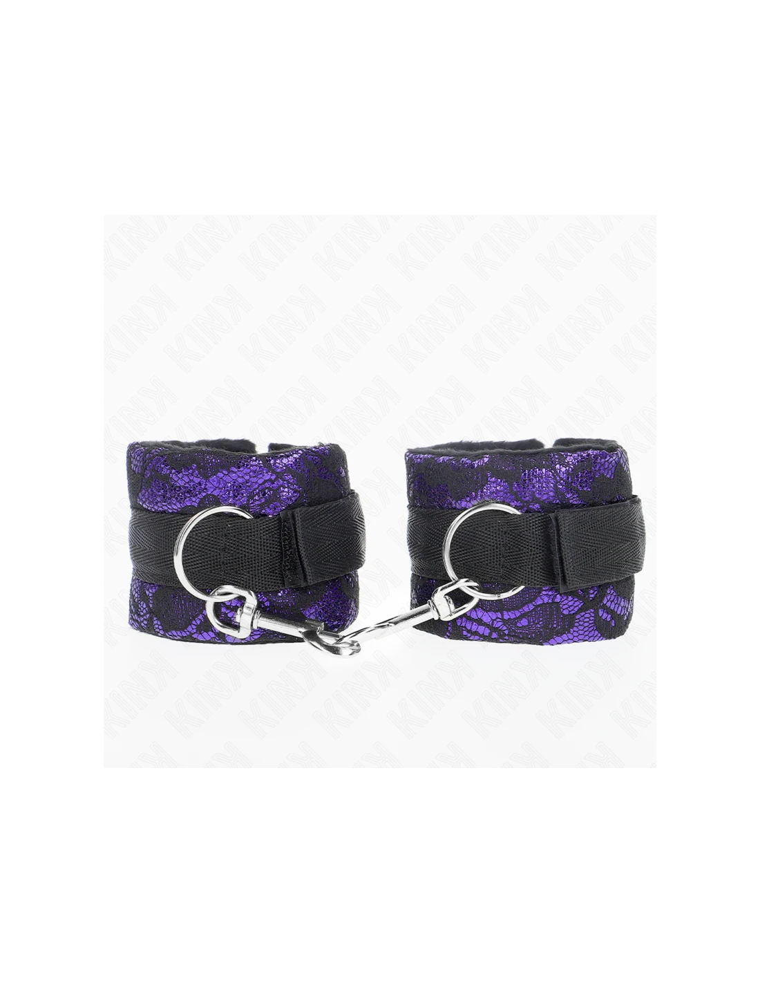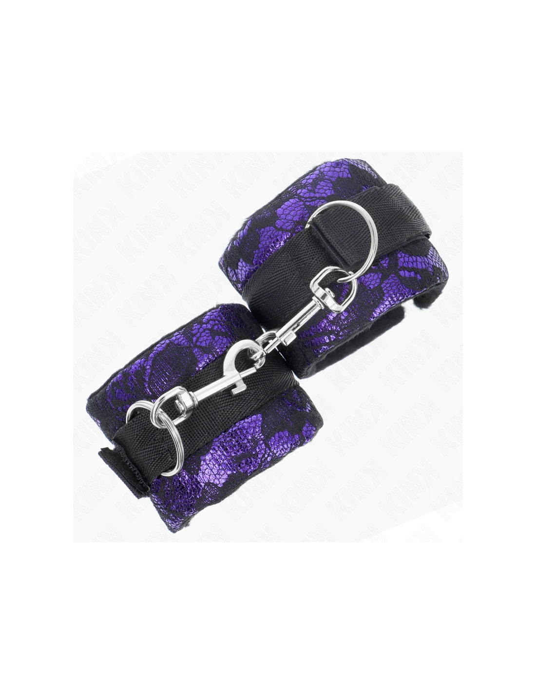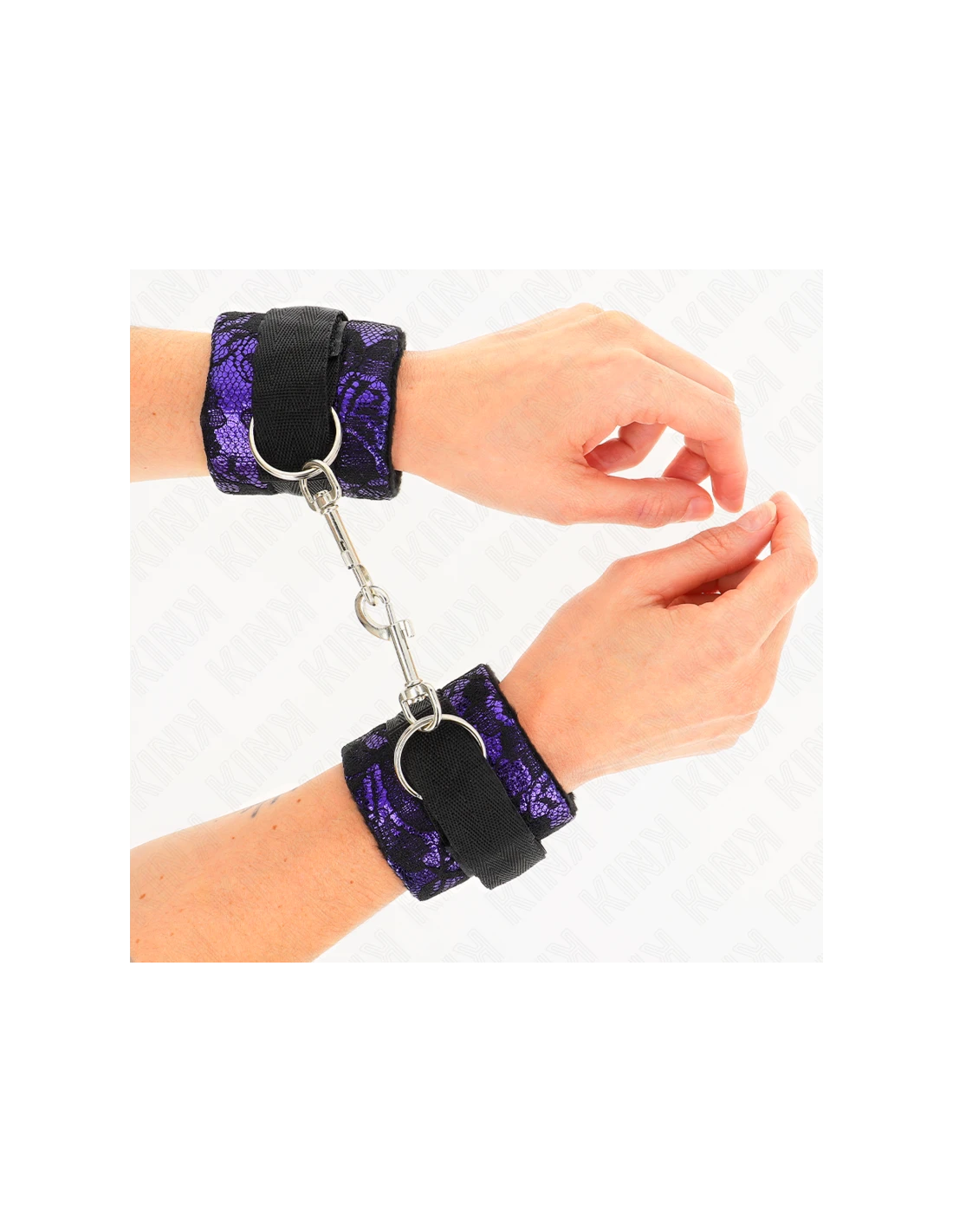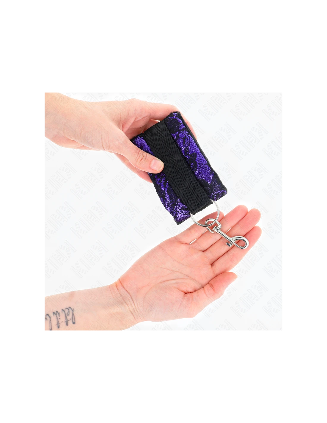 KINK - MUÑEQUERAS CORTAS DE ENCAJE TERCIOPELO Y UNIÓN DE NYLON VIOLETA/NEGRO 23 X 6.5 CM