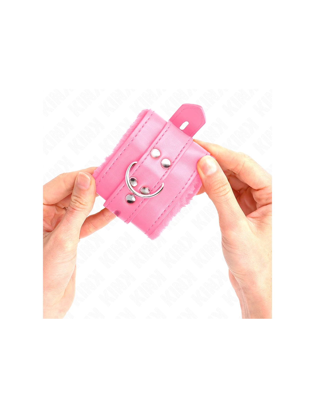 KINK - MUÑEQUERAS FORRADAS CON AGUJEROS CUADRADOS ROSA Y CORREA ROSA AJUSTABLE 17-29 CM X 6 CM