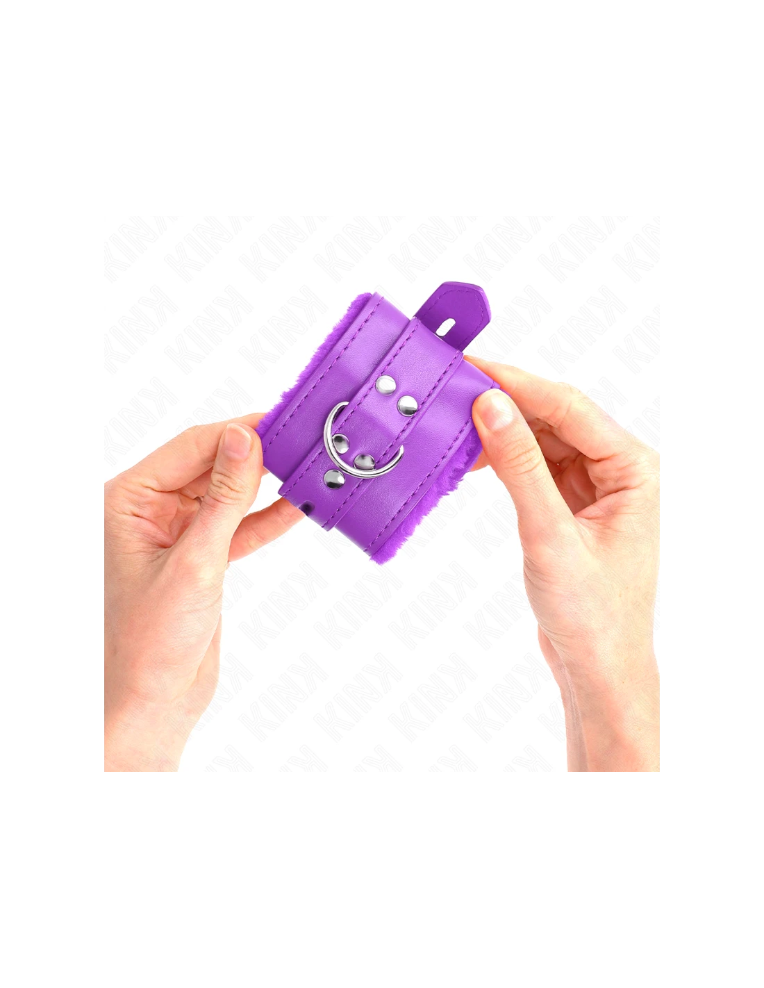 KINK - MUÑEQUERAS FORRADAS CON AGUJEROS CUADRADOS VIOLETA Y CORREA VIOLETA AJUSTABLE 17-29 CM X 6 CM