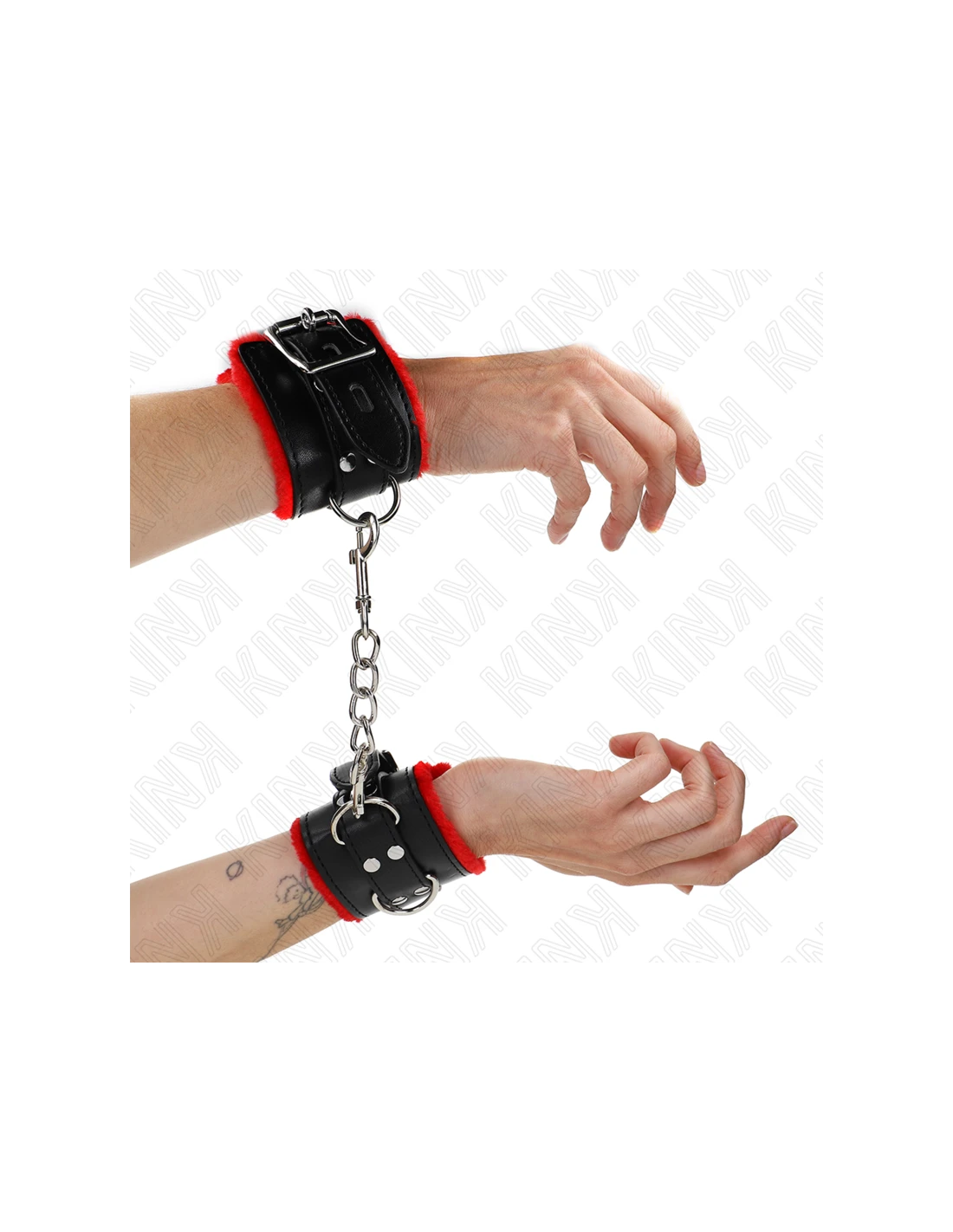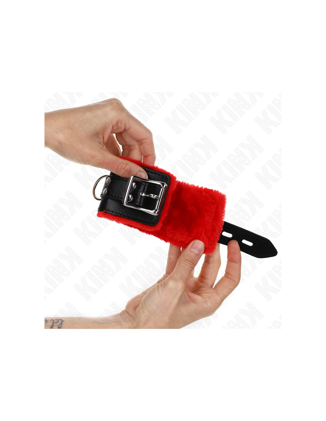 KINK - MUÑEQUERAS FORRADAS CON AGUJEROS CUADRADOS ROJO Y CORREA NEGRO AJUSTABLE 17-29 CM X 6 CM
