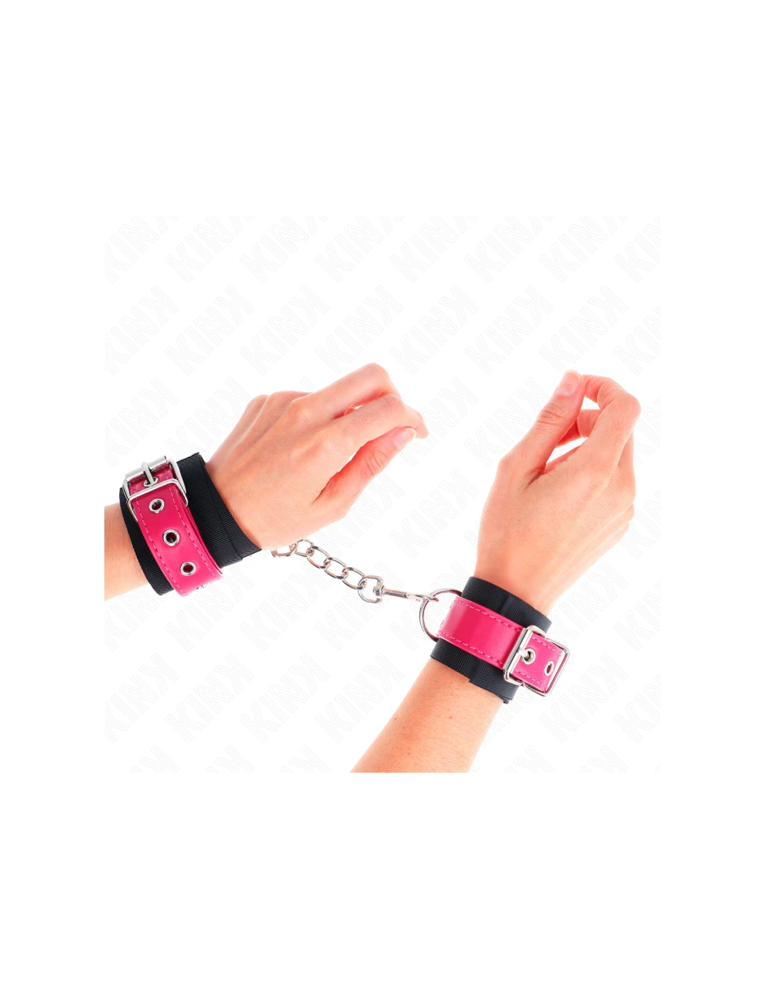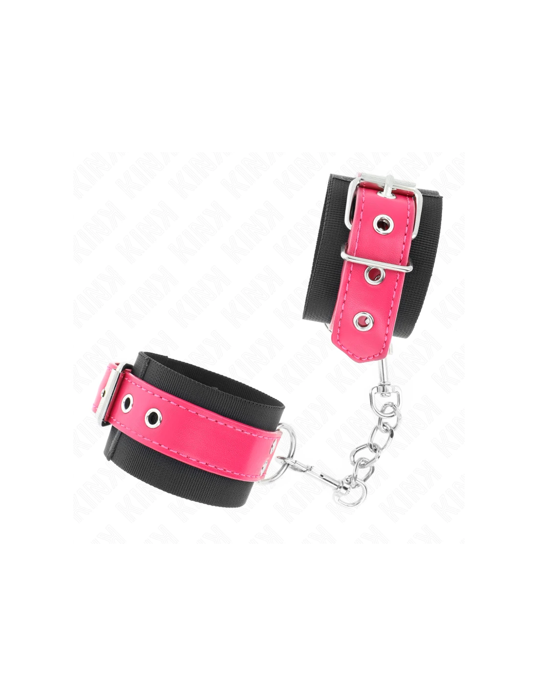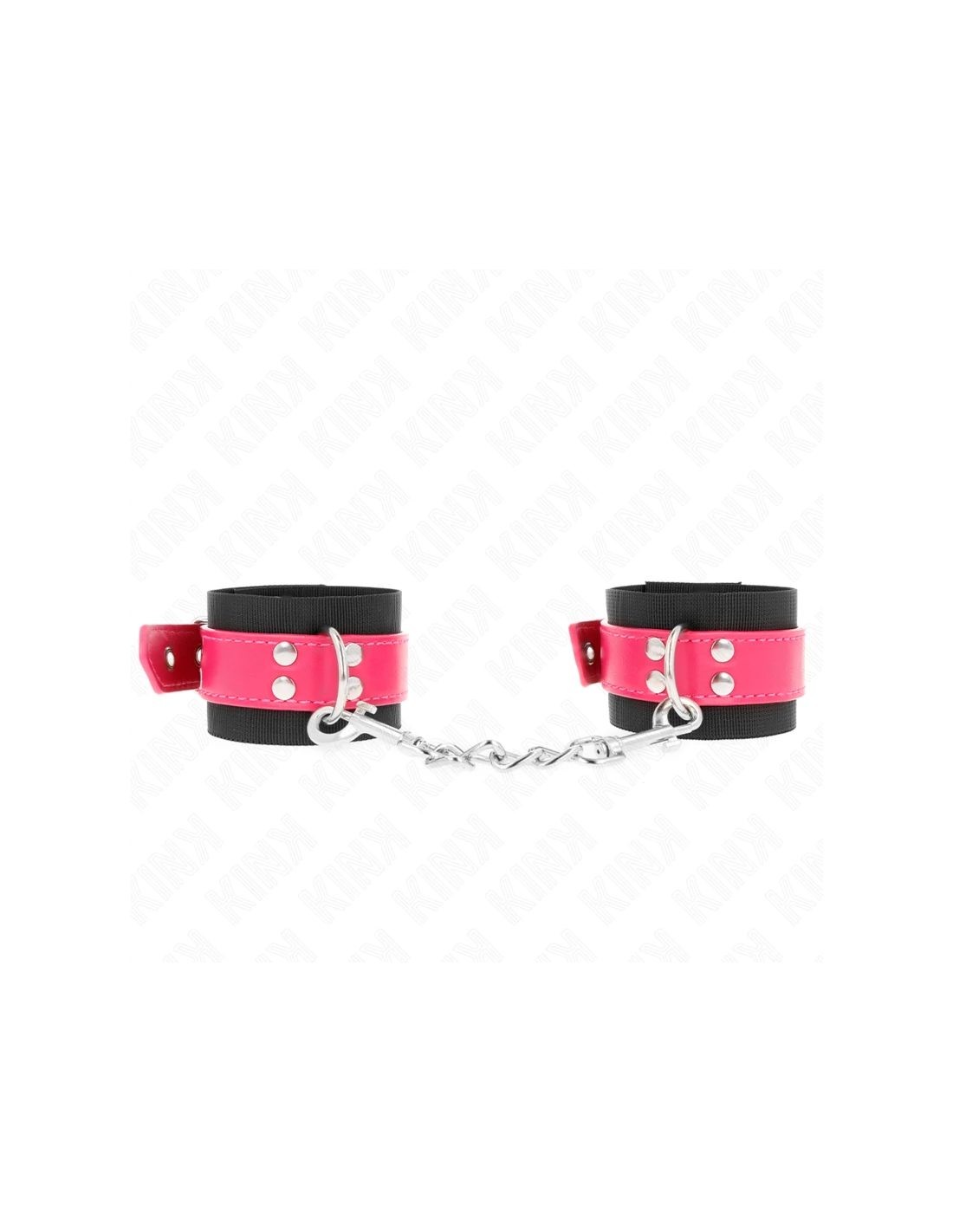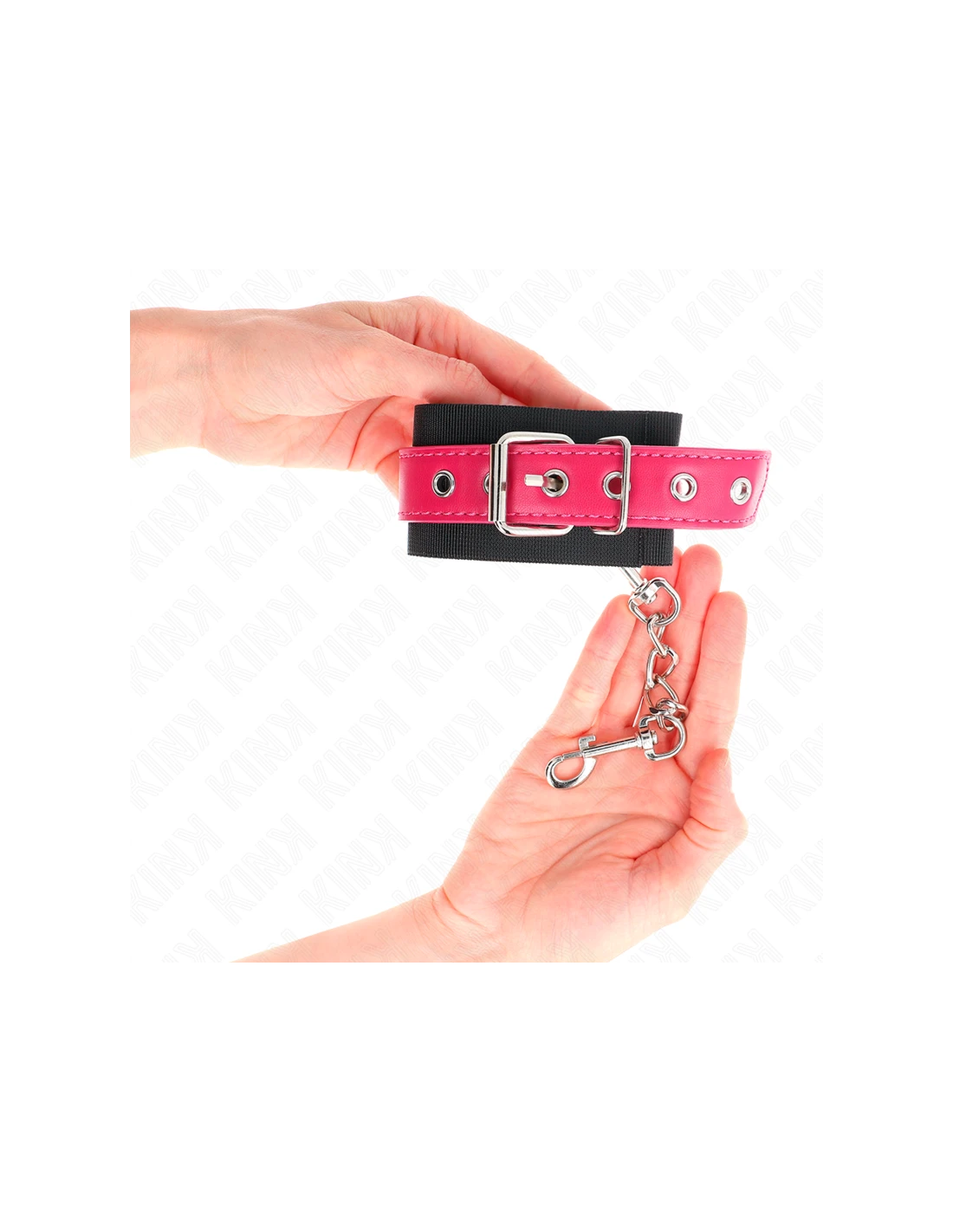 KINK - MUÑEQUERAS DE NYLON NEGRO CON CORREA POLIPIEL FUSCIA AJUSTABLE 19-29 CM X 5.1 CM