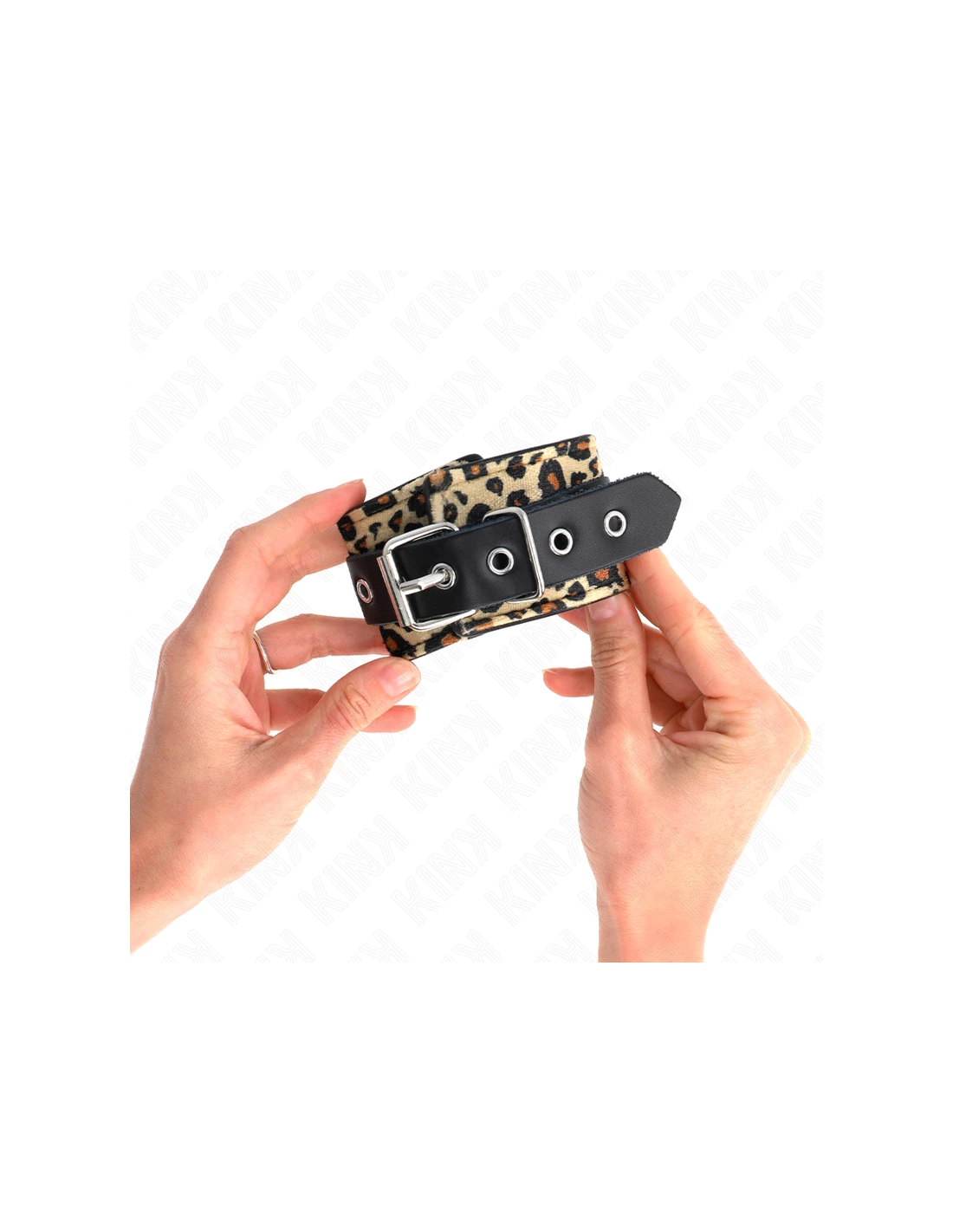 KINK - MUÑEQUERAS DE CUERO ESTILO LEOPARDO AJUSTABLE 18-29 CM X 5.5 CM