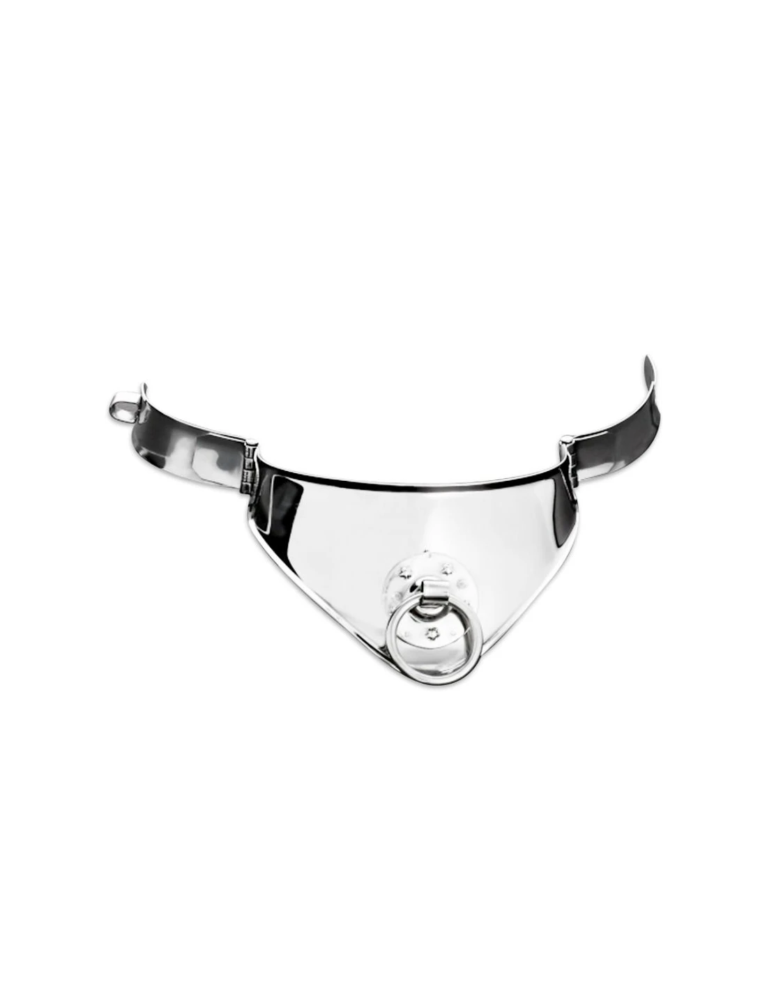 Con una forma clásica que es estrecha en los lados pero larga y puntiaguda en el frente, hay un aspecto antiguo de poder en este collar. El latón cromado le da un aspecto atractivo pero ligero, ya que envuelve el cuello y resalta las características de la parte superior del cuerpo, lo que lo hace ideal para usar en cualquier momento.