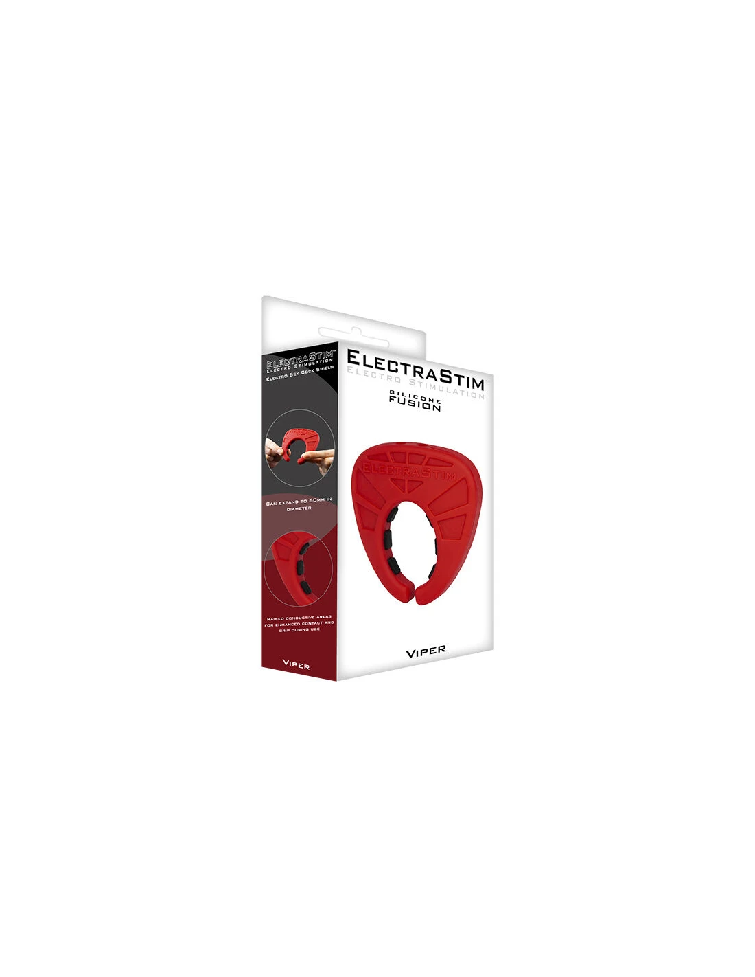 Ya sea que uses Viper para masturbarte o jugar con un compañero, este atrevido escudo te permite experimentar las sensaciones únicas del electro sexo en una amplia gama de escenarios. Hecho de silicona roja y negra característica de la gama Fusion, el llamativo diseño de Viper levanta y acuna la polla y las bolas para un contacto eléctrico óptimo y erecciones mejoradas.