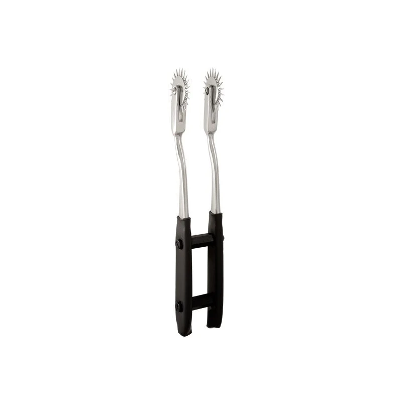 Cada pequeña rueda presenta una serie de púas puntiagudas que se deslizan suavemente sobre la piel, provocando una placentera piel de gallina y aumentando la sensibilidad para mejorar el impacto de cada toque íntimo. Al conectarse con contactos bipolares, ambas ruedas cobran vida con una sensación de hormigueo para prolongar la efectividad de sus formas de burla.