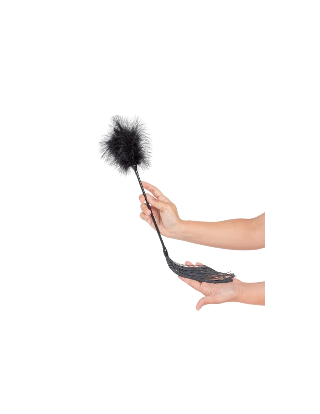 Es el momento adecuado para probar este nuevo juguete destinado al placer con látigo por un lado y plumas por el otro.