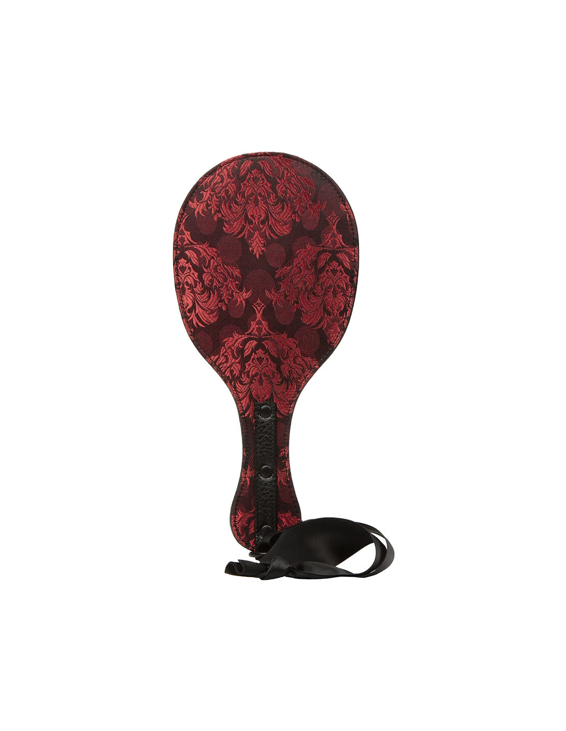 Para las noches en las que te sientas especialmente traviesa, disfruta de los placenteros toques de la Pala Doble Redonda Scandal®. Dale a tu sumiso suaves toques con la suave pala de doble capa y su resistente mango. El castigo y el placer se combinan a la perfección con esta pala doble, con un interior de polipiel vanguardista y un exterior de brocado sedoso. Tu sumiso disfrutará de cada azote intenso de esta resistente pala de doble costura y obedecerá todas tus órdenes mientras la pala doble proporciona potentes palmadas. Esta suave pala está diseñada tanto para principiantes como para amantes del sexo experimentados, para que prueben suaves toques y disfruten de las impresionantes palmadas que anhelan los fetichistas más experimentados. Libera tus deseos más atrevidos y disfruta de una noche de placer sin límites.