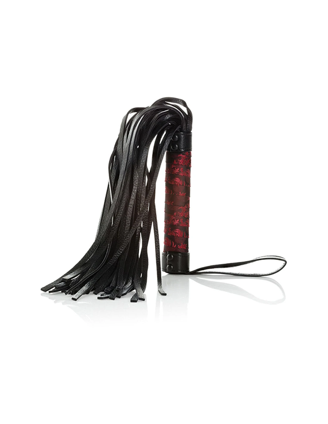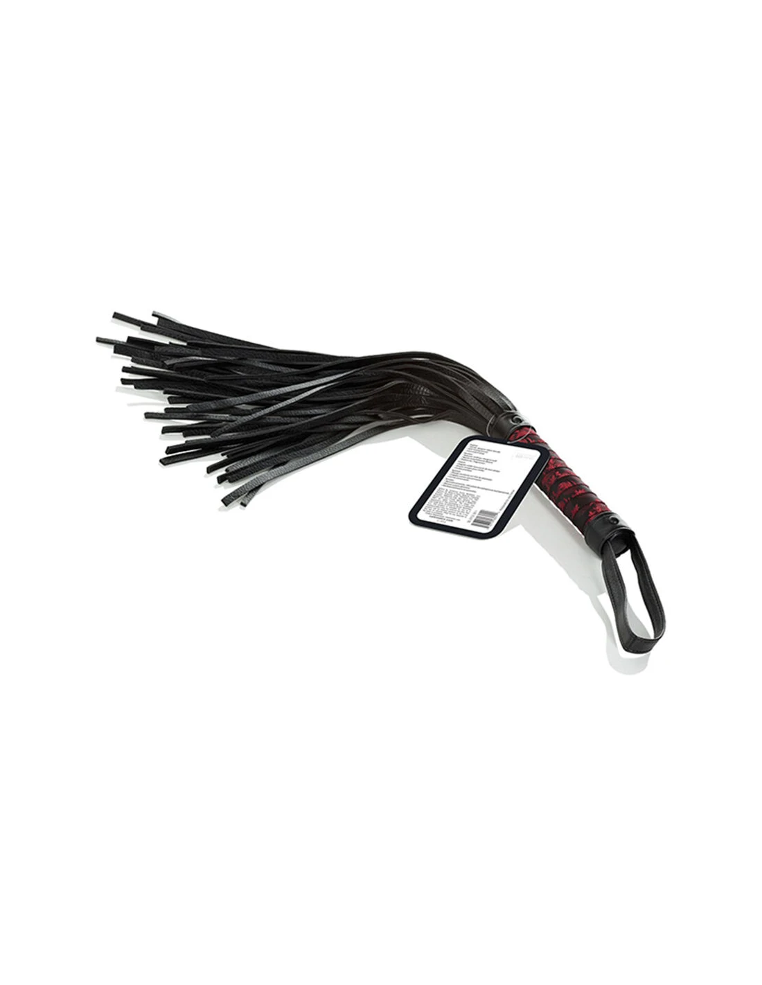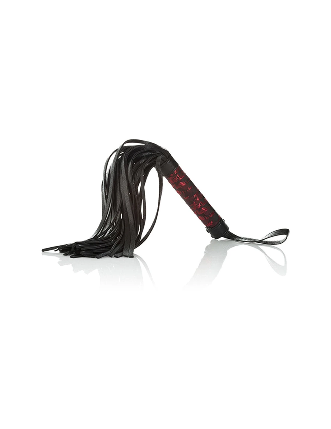 Despierta tu lado sumiso con el látigo Scandal, con una elegante tela de diseño en rojo y negro y un mango resistente. Las suaves borlas provocan y hacen cosquillas para un juego suave, o proporcionan un aguijón agudo y satisfactorio al usarlo con intensidad; perfecto tanto para principiantes como para amantes del fetiche.