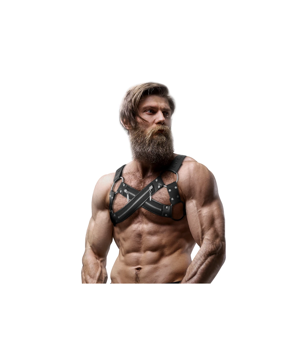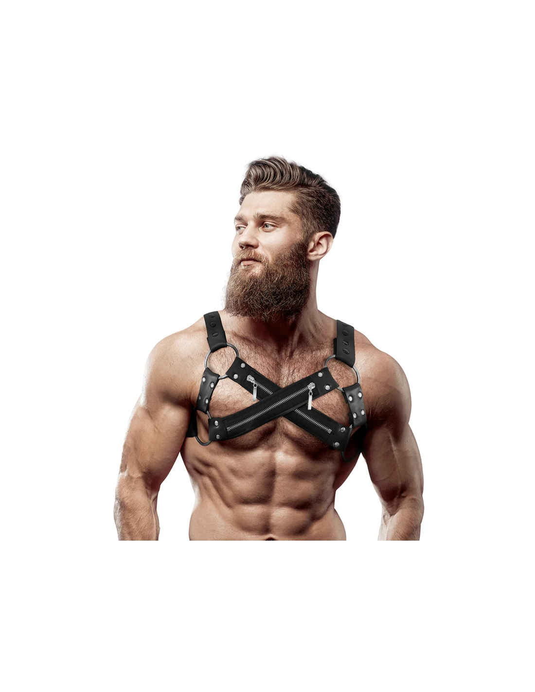 FETISH SUBMISSIVE ATTITUDE - ARNÉS BULLDOG AJUSTABLE NEOPRENO PECHO CRUZADO CON CREMALLERAS HOMBRE