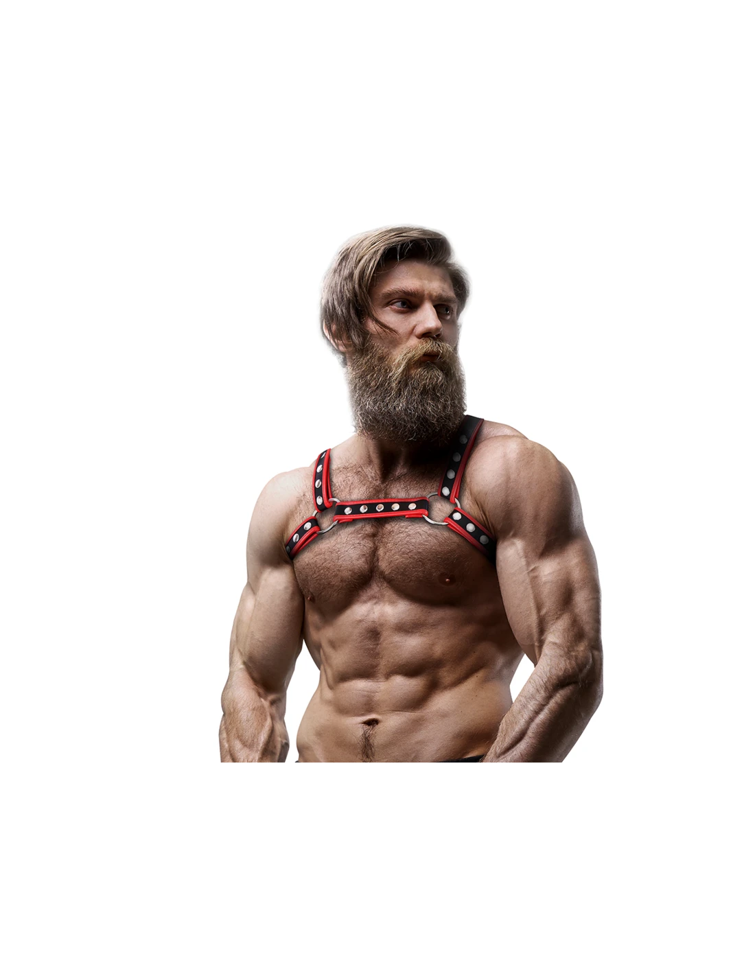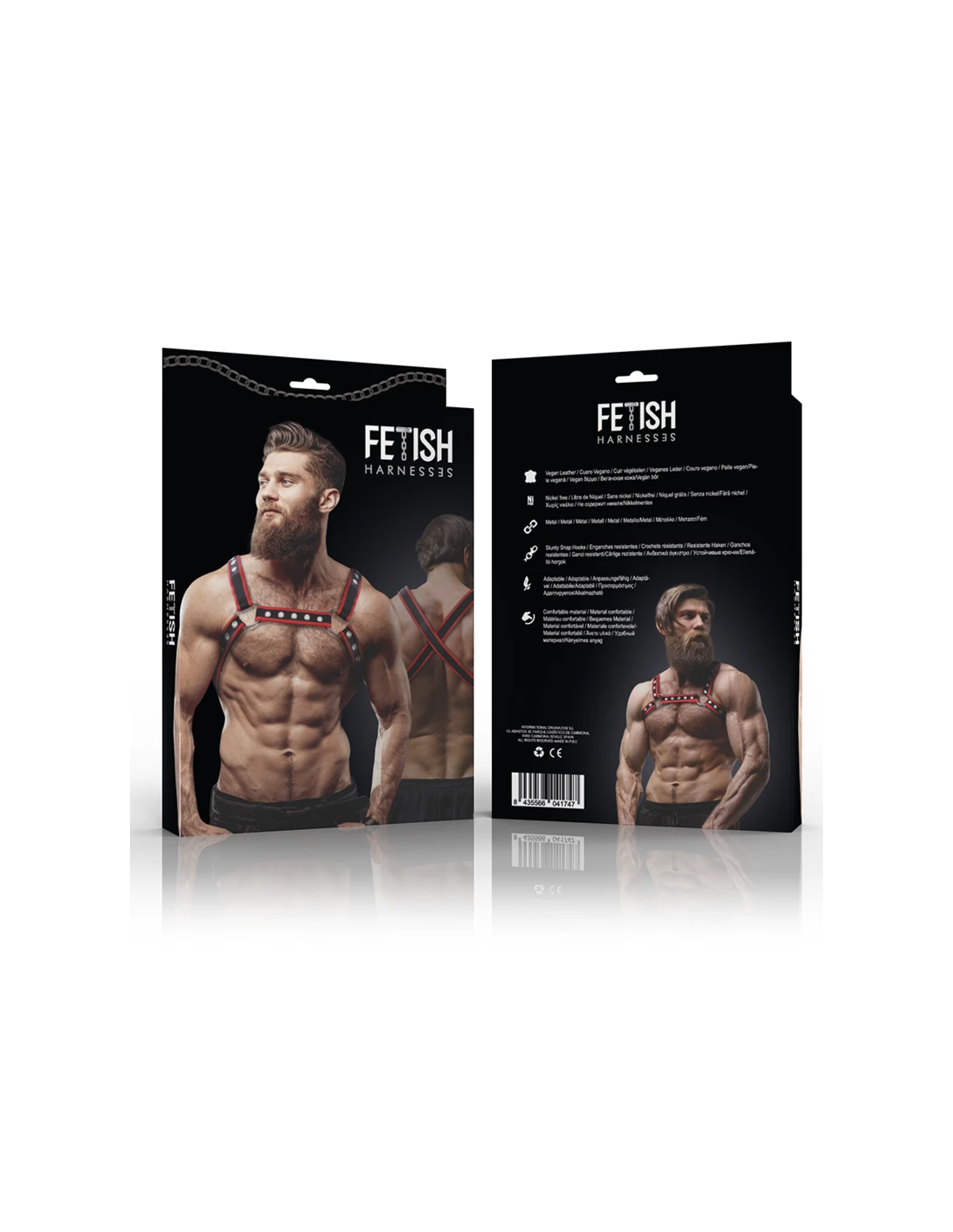FETISH SUBMISSIVE ATTITUDE - ARNÉS BULLDOG ECOPIEL PECHO HOMBRE NEGRO/ROJO