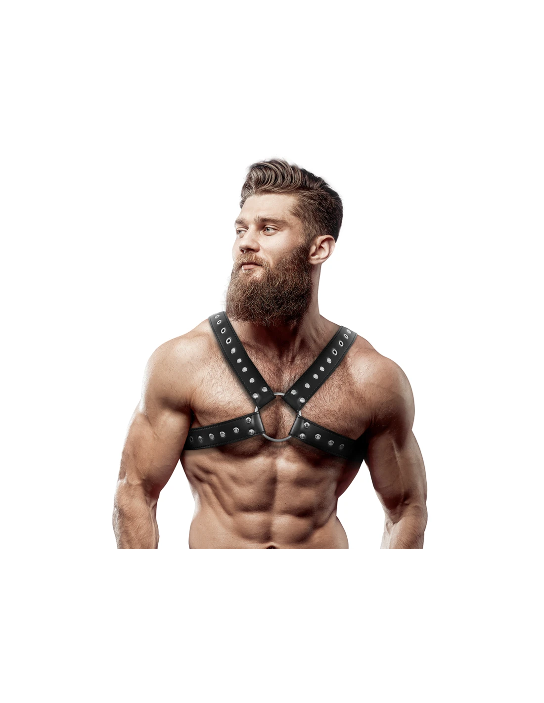 FETISH SUBMISSIVE ATTITUDE - ARNÉS ECOPIEL PECHO CRUZADO CON TACHUELAS HOMBRE