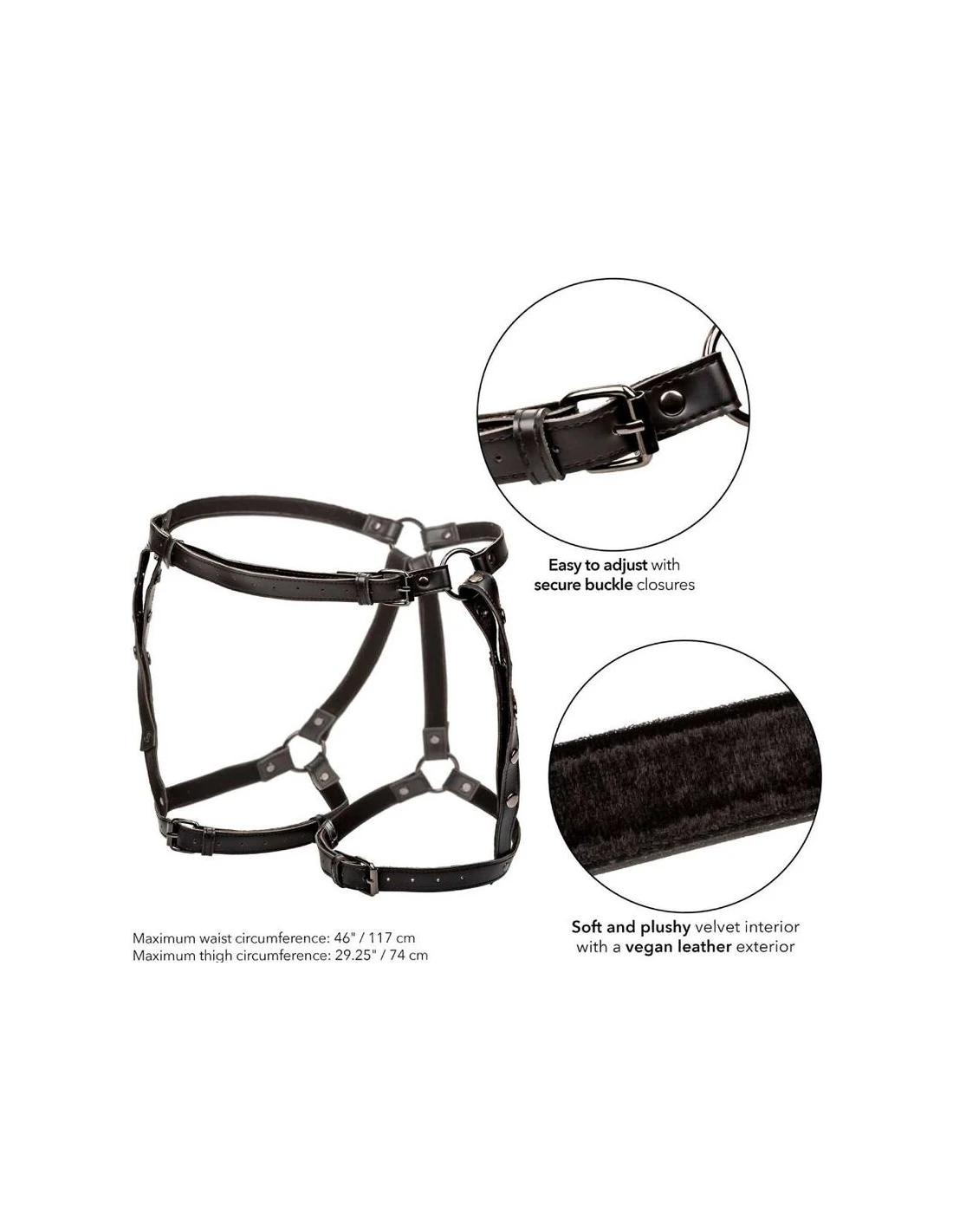 - Dimensiones del producto: 117 cm circunferencia máxima de la cintura y 74 cm circunferencia máxima del muslo