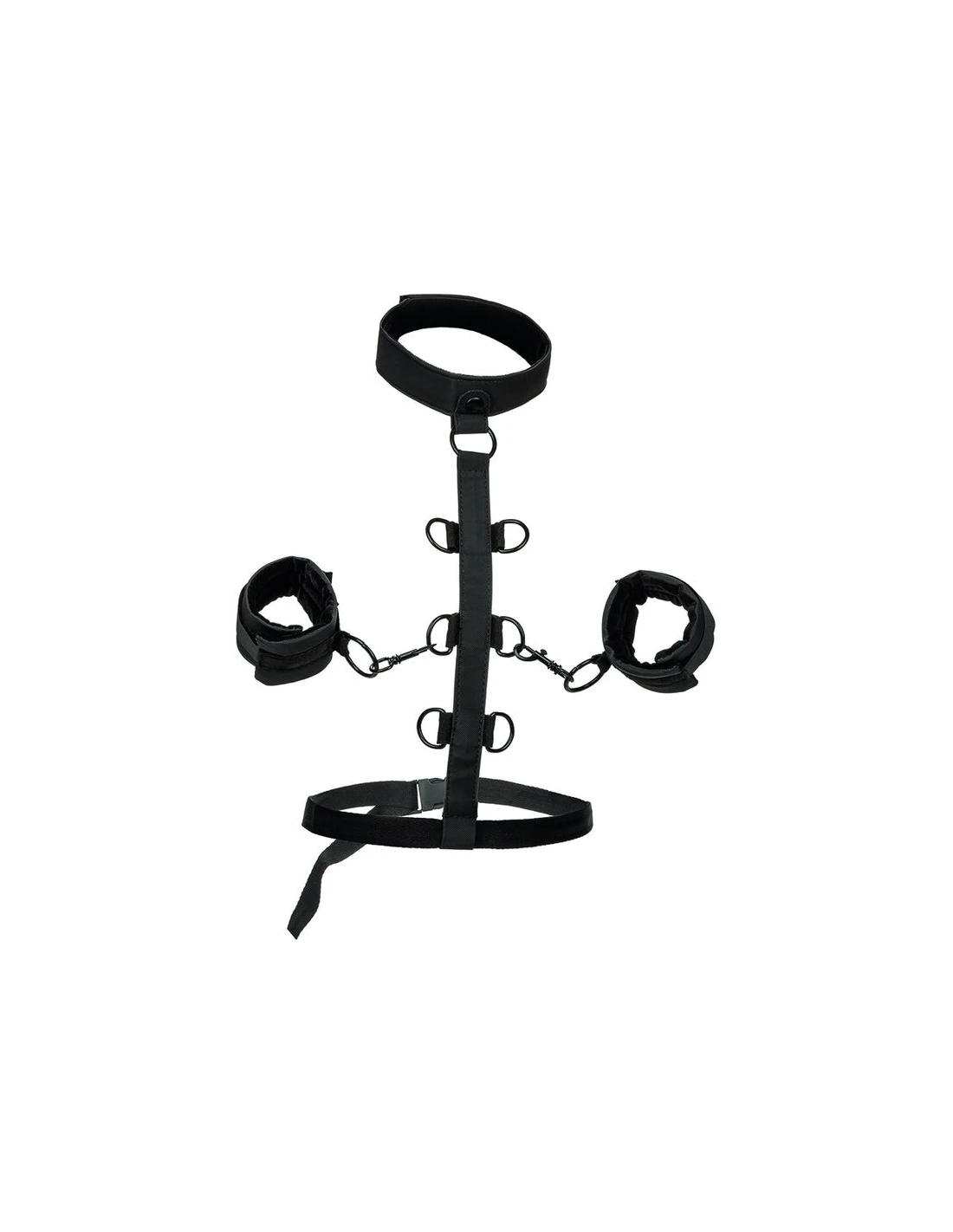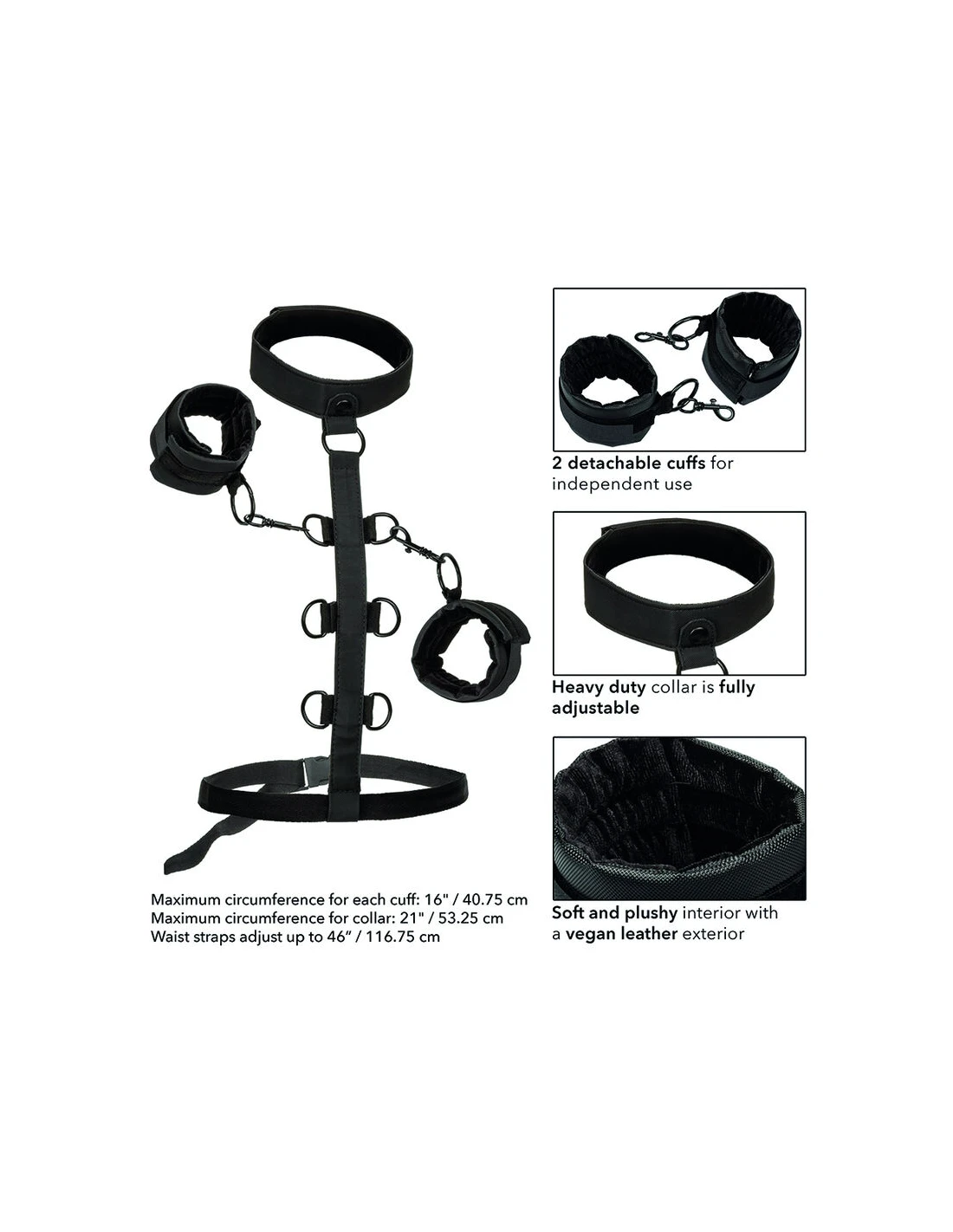 Amplíe los límites del placer y disfrute de infinitas posibilidades de bondage con el sistema de sujeción corporal CalExotics Boundless Collar. Ponte este atrevido sistema de sujeción y explora el juego apasionado con los puños universales de cuero vegano, el cuello resistente y la correa de sujeción de varios niveles. Tanto los fetichistas como los principiantes tímidos pueden disfrutar de un apasionado juego de placer deslizándose en las sujeciones perversamente sexys y los puños acolchados de cuero sintético. Una vez que hayas envuelto este hermoso collar pecaminoso alrededor de tu cuello, tu dominante se deleitará en usar los múltiples niveles de restricciones para comandar y controlar tu placer. Los puños de cuero vegano de felpa están equipados con un cierre universal de alta resistencia con un diseño giratorio para brindarle a su placer un rango completo de movimiento. Además, los puños desmontables se pueden usar de forma independiente para más aventuras. Incluso a los más nuevos en el juego sumiso les encantará la emocionante comodidad de la lujosa capa interior del cuello y el diseño de doble acolchado y doble costura del puño. Haz realidad tus sueños más eróticos y sumérgete en tus deseos más aventureros con este collar de sujeción corporal sensacionalmente cómodo.