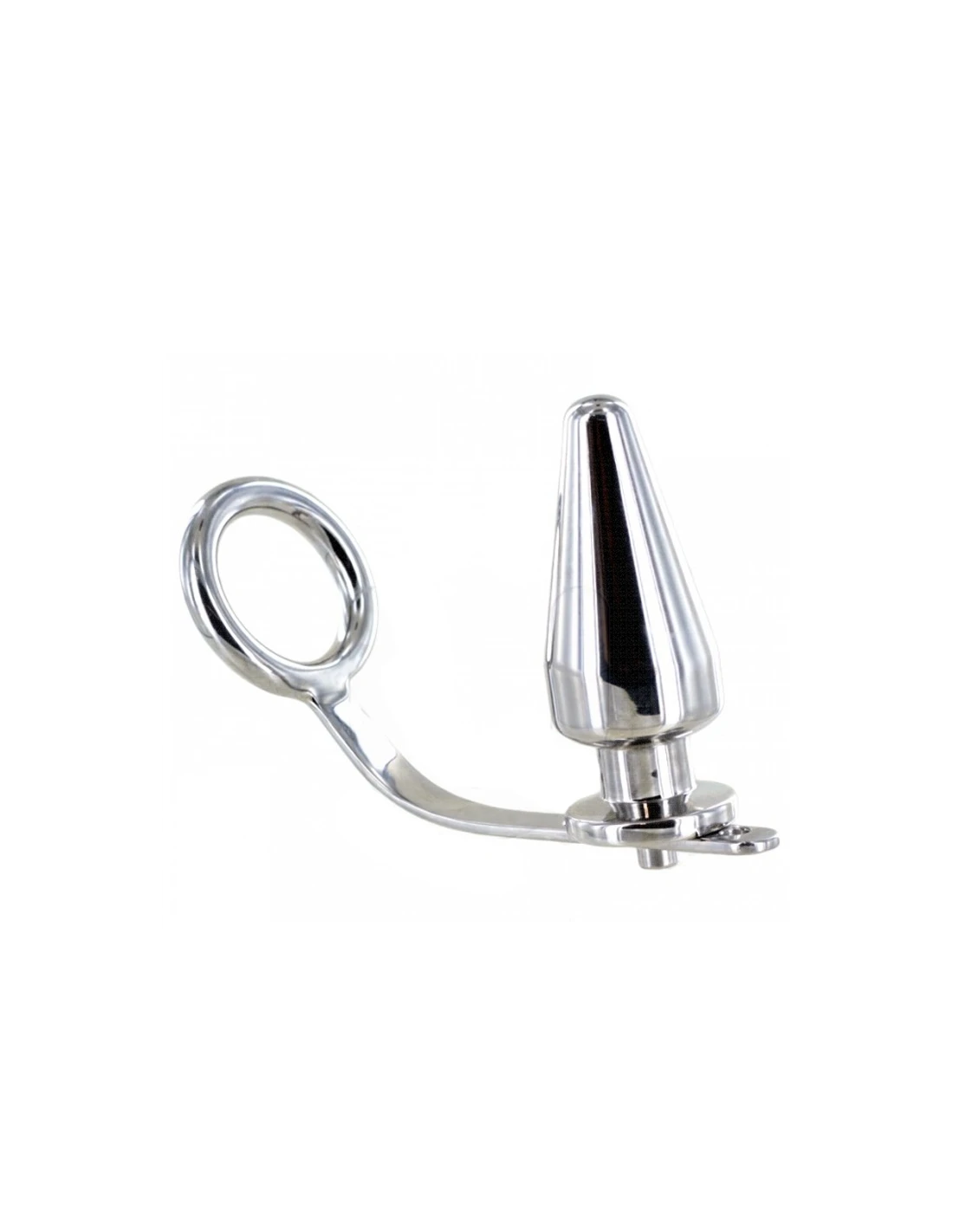 Consiste en un aro de acero quirúrgico del que sale una barra con un plug anal cónico en el otro extremo. Utiliza un poco de lubricante para introducirla. Está ergonómicamente diseñado para que encaje perfectamente.