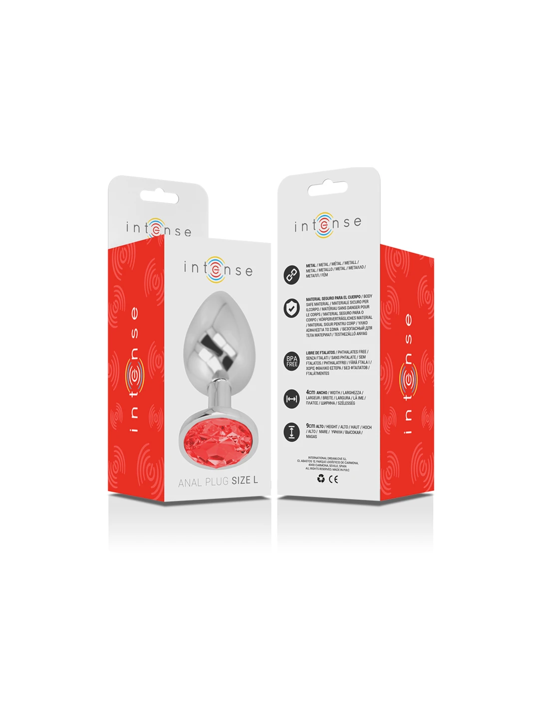 INTENSE - PLUG ANAL METAL ALUMINIO CON CRISTAL ROJO TALLA L