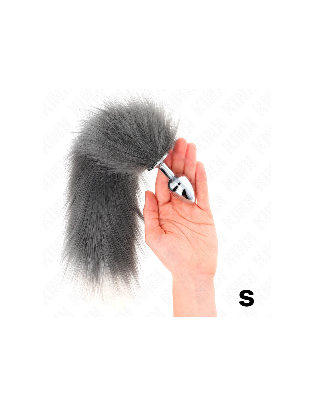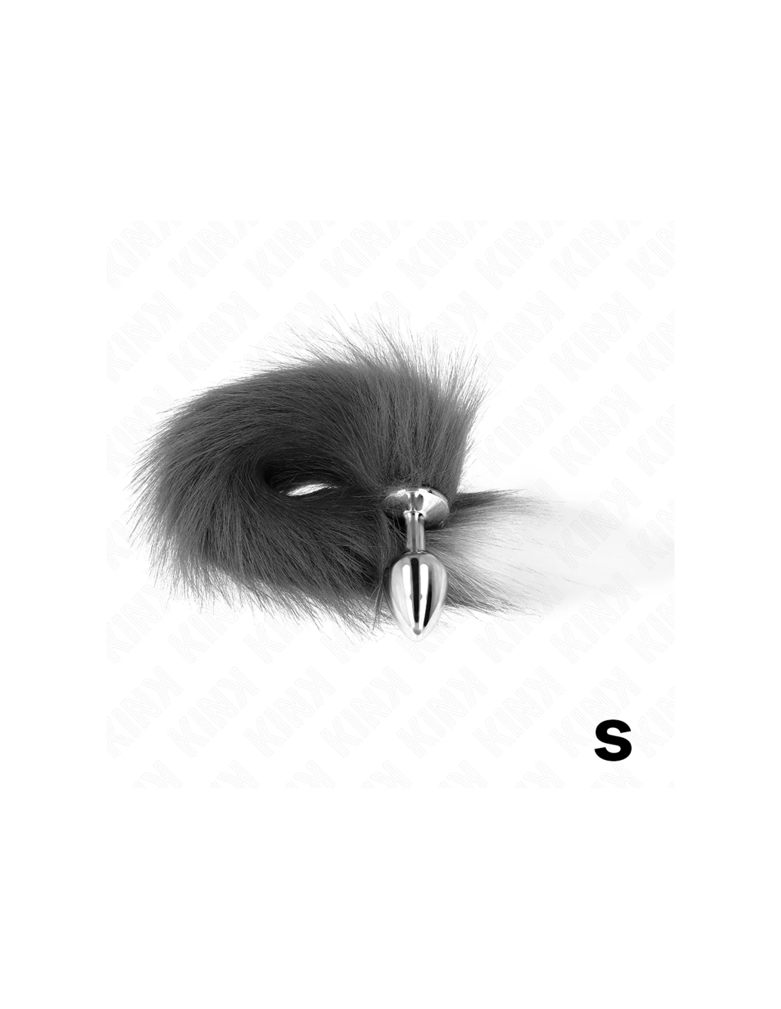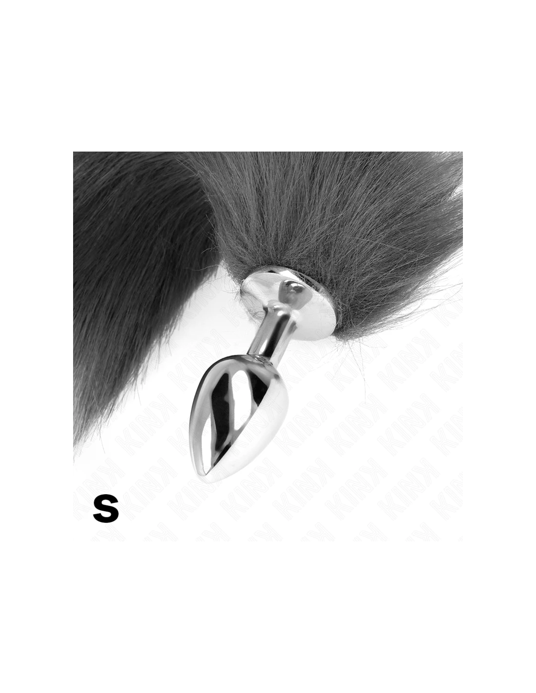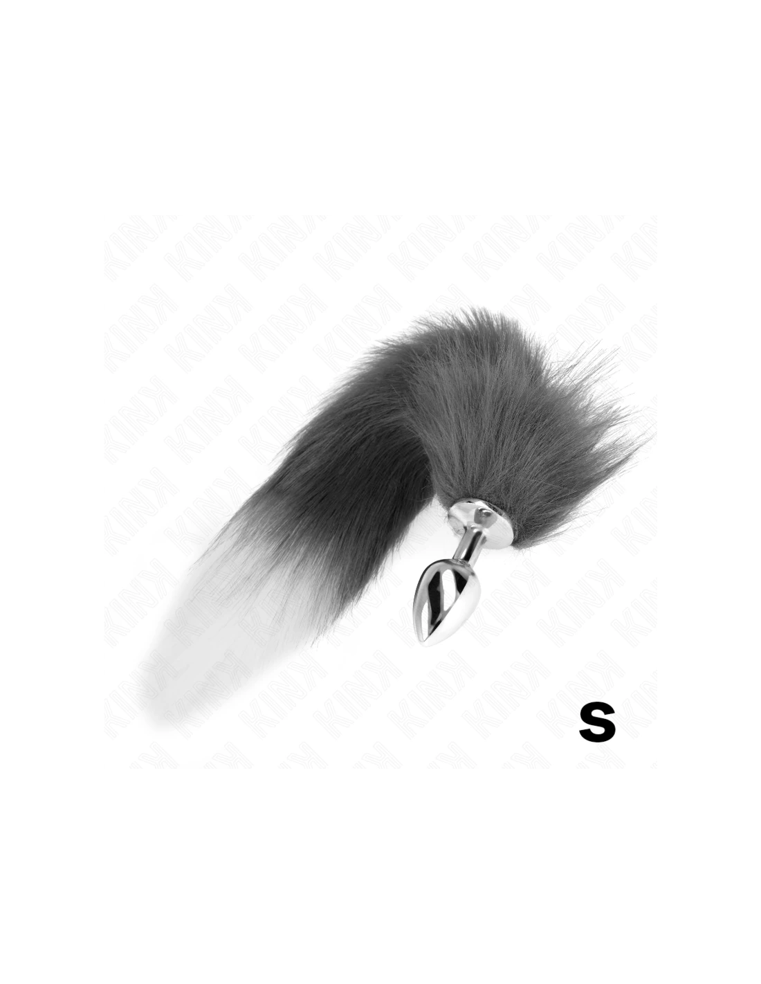 KINK - PLUG ANAL TALLA S 7 X 3 CM CON COLA SINTÉTICA 40 CM PLATEADO Y BLANCO