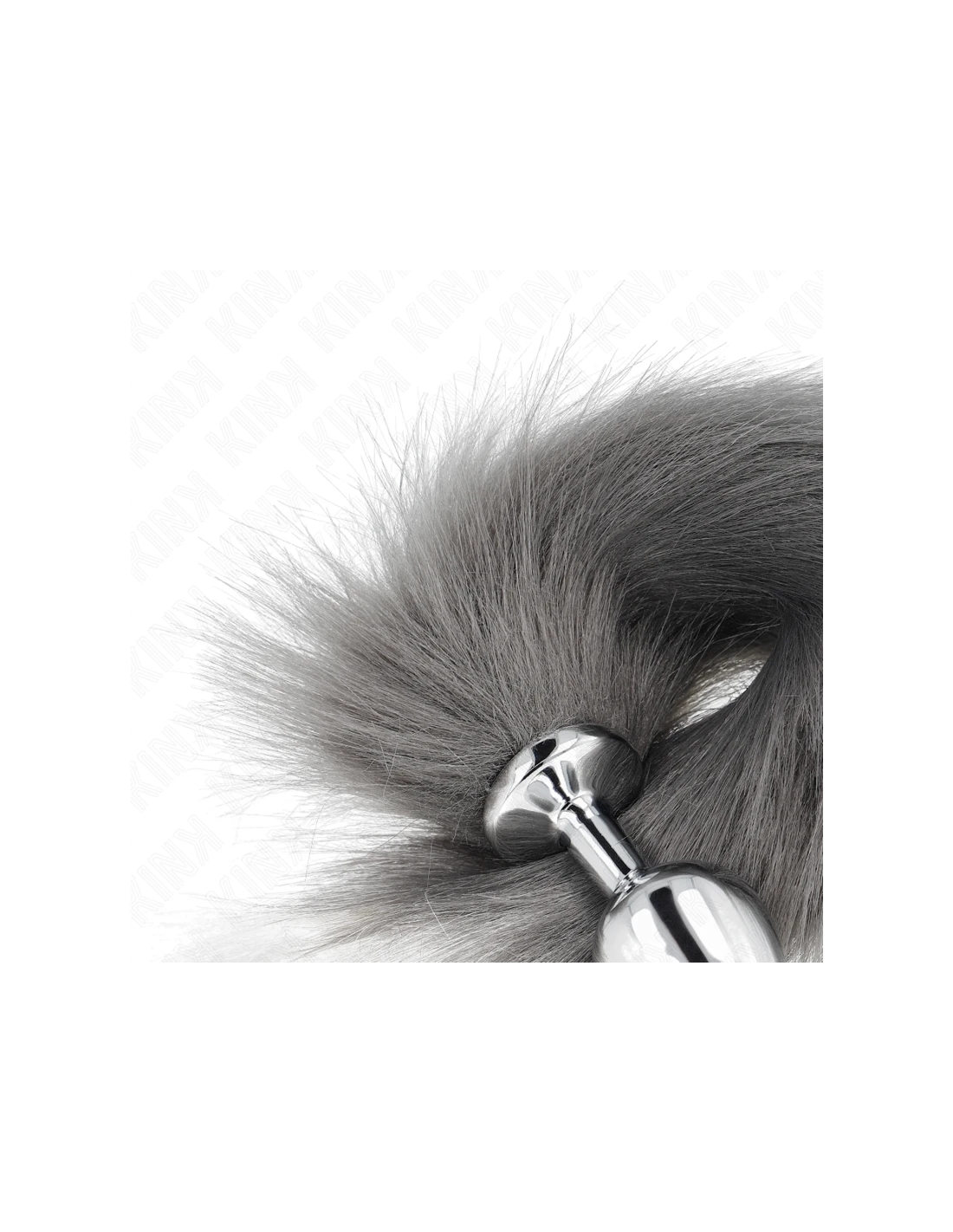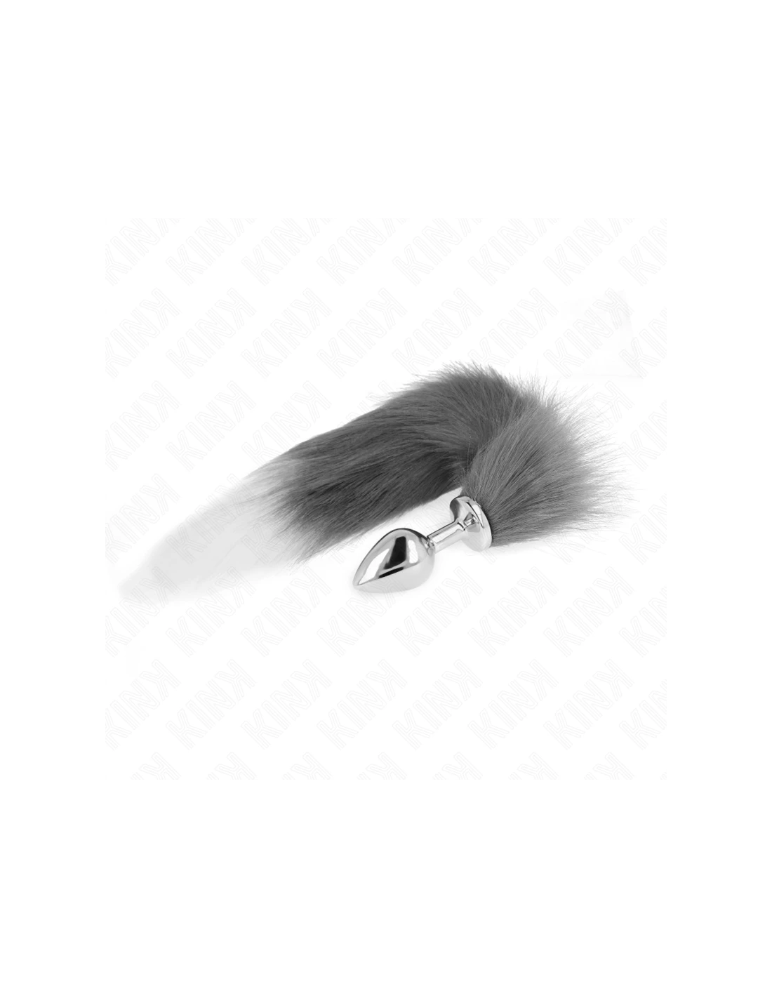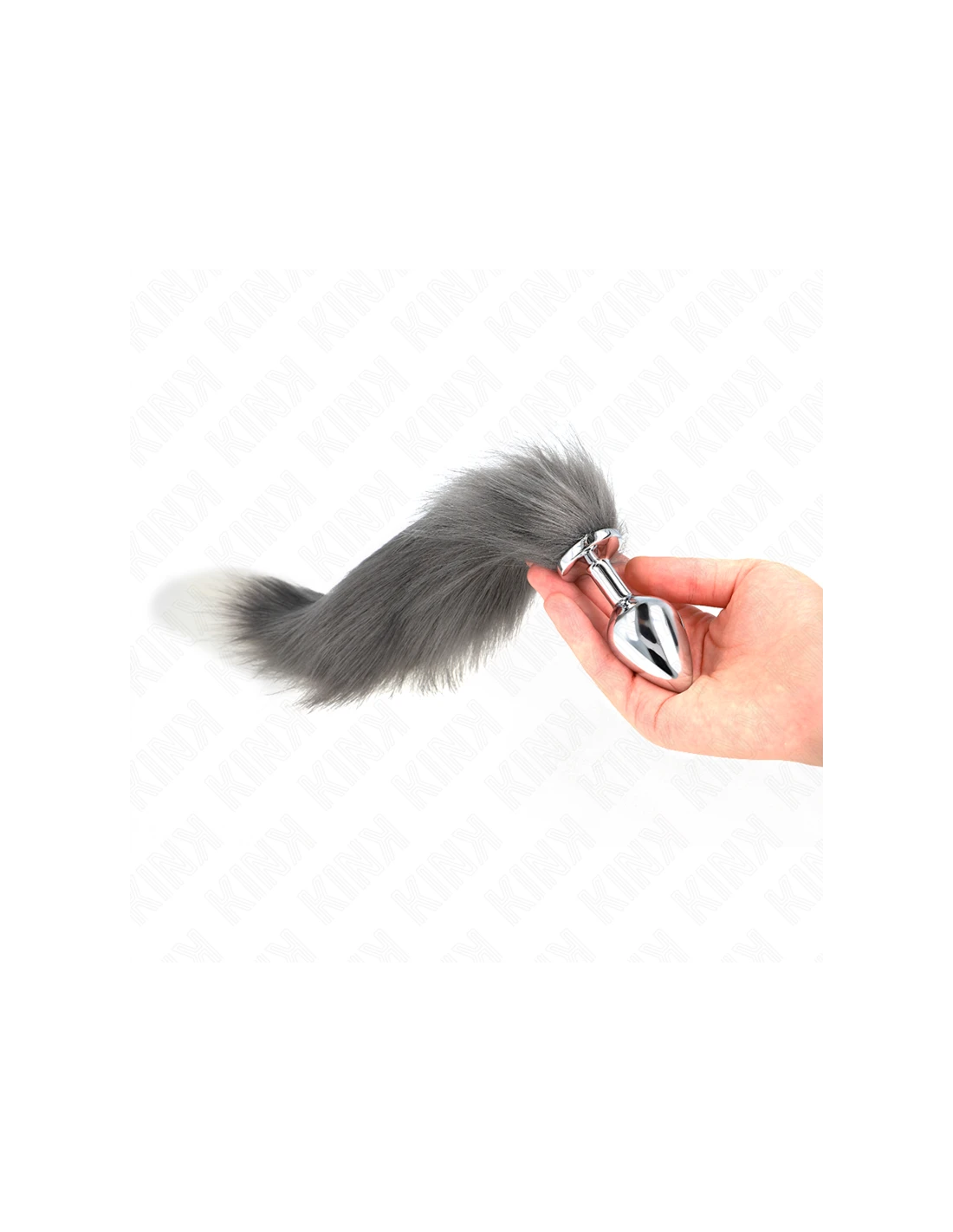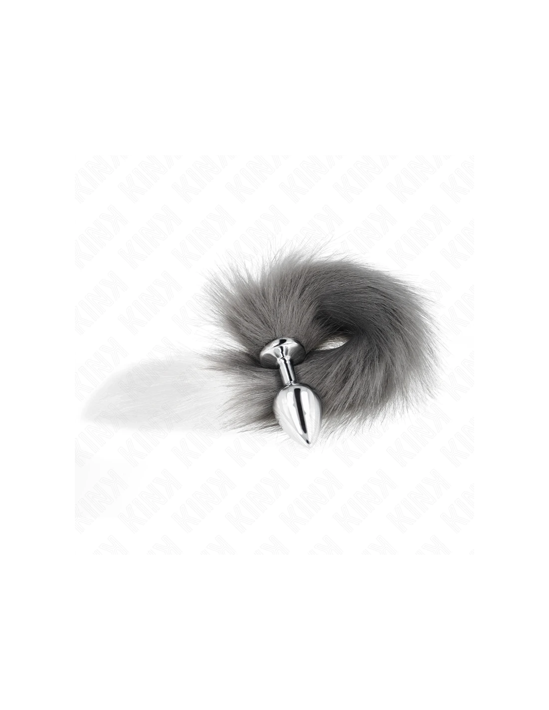 KINK - PLUG ANAL TALLA M 8 X 3.5 CM CON COLA SINTÉTICA 40 CM PLATEADO Y BLANCO