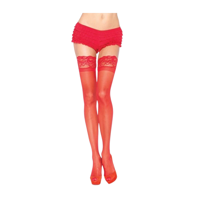 LEG AVENUE - MEDIAS ROJAS CON ENCAJE AUTOADHESIVAS