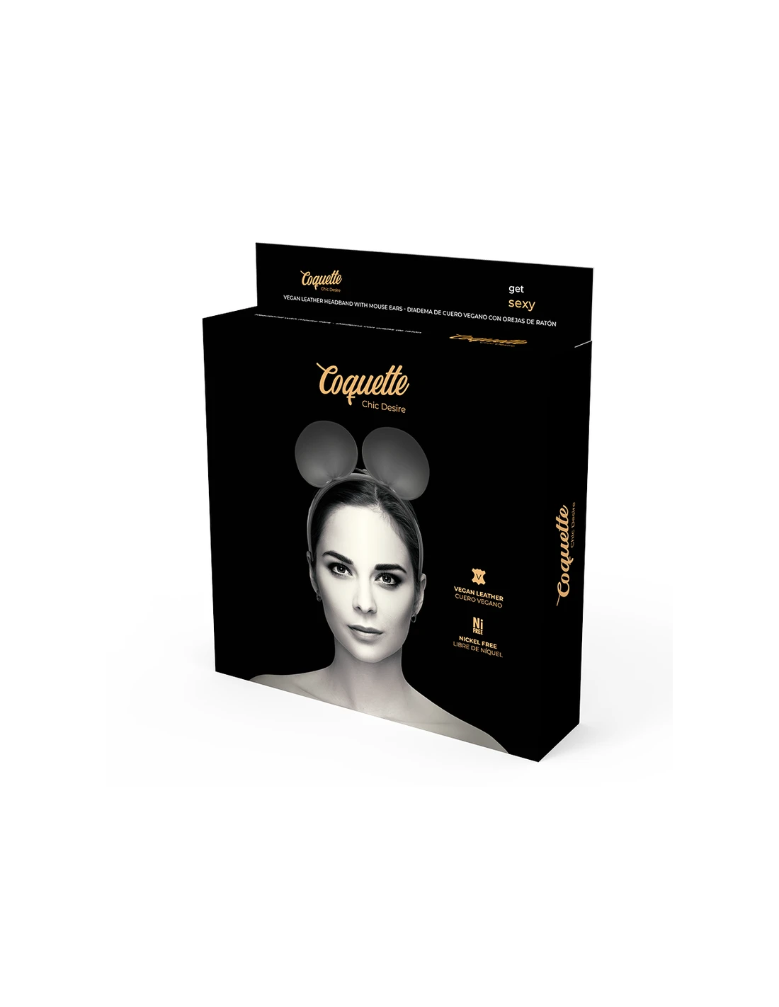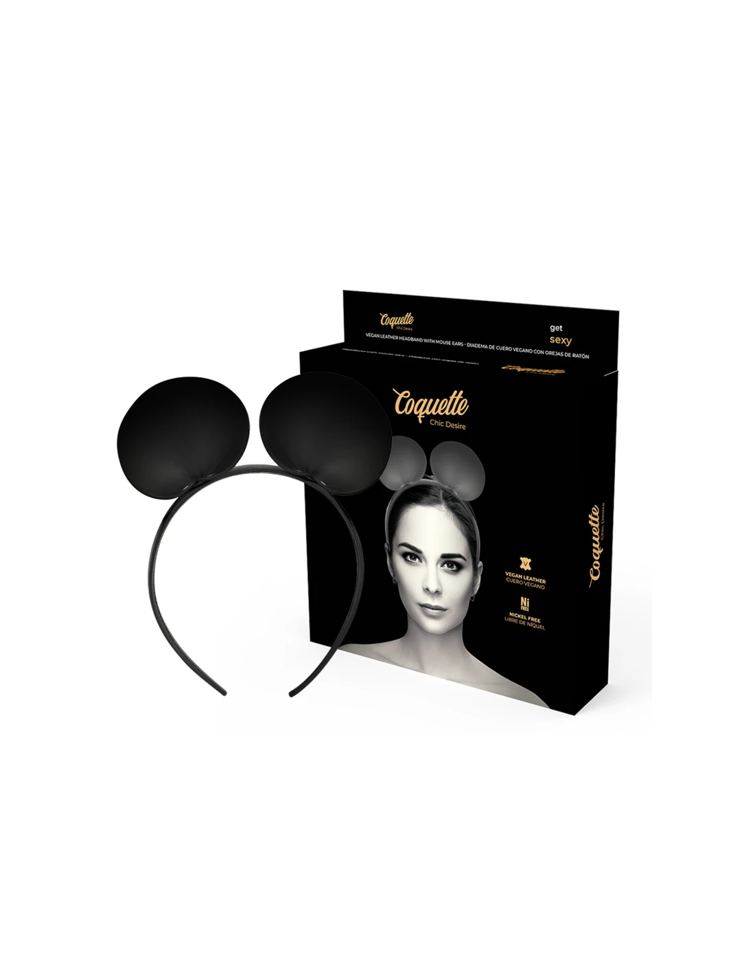 Original diadema con orejas de mouse fabricado en cuero vegano. Un producto original que puede complementar tus conjuntos de lencería.