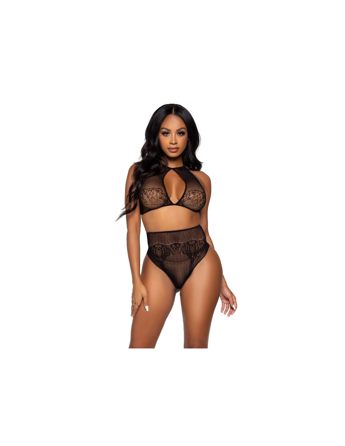 Set 2 piezas. Top corto de cuello halter con diseño de encaje y abertura en forma de ojo de cerradura y tanga de cintura alta. Con Leg Avenue reforzarás tu feminidad y obtendrás ese toque justo de seducción, sensualidad y elegancia.