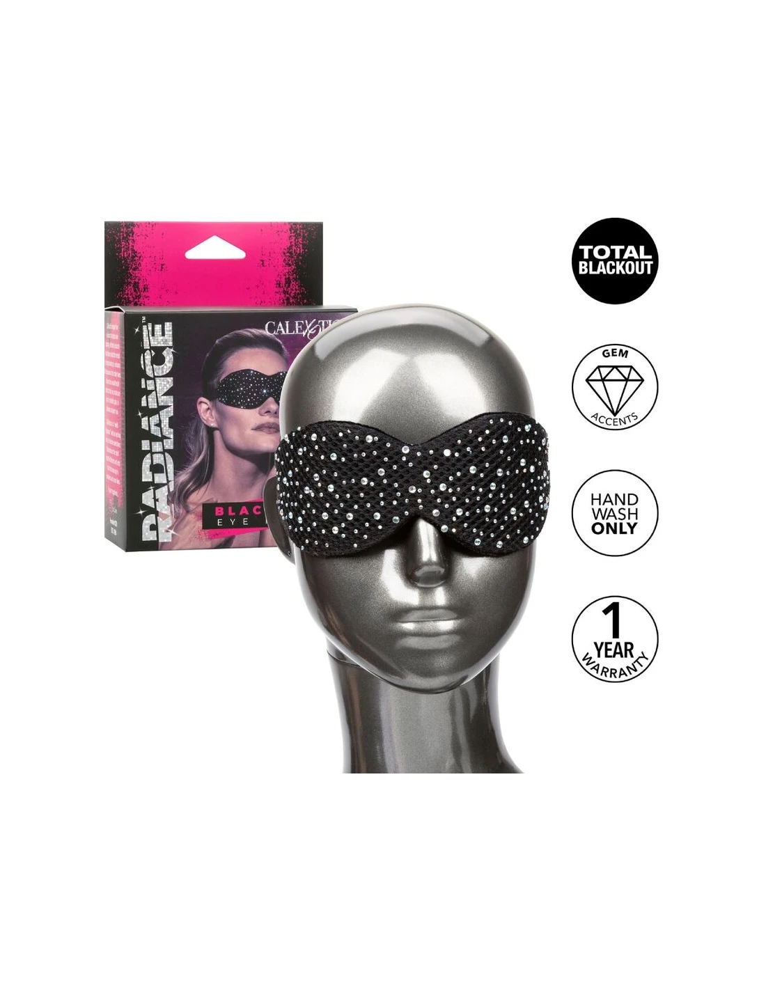 La deslumbrante máscara de ojos Radiance Blackout es la venda perfecta para cualquier aventurero glamoroso que busque explorar el juego sensorial o disfrutar de una gran noche de descanso. Entrégate a todos los deseos de tu amante y mejora la sensación cada vez que te pongas esta deslumbrante mascarilla de pedrería de diseño.
