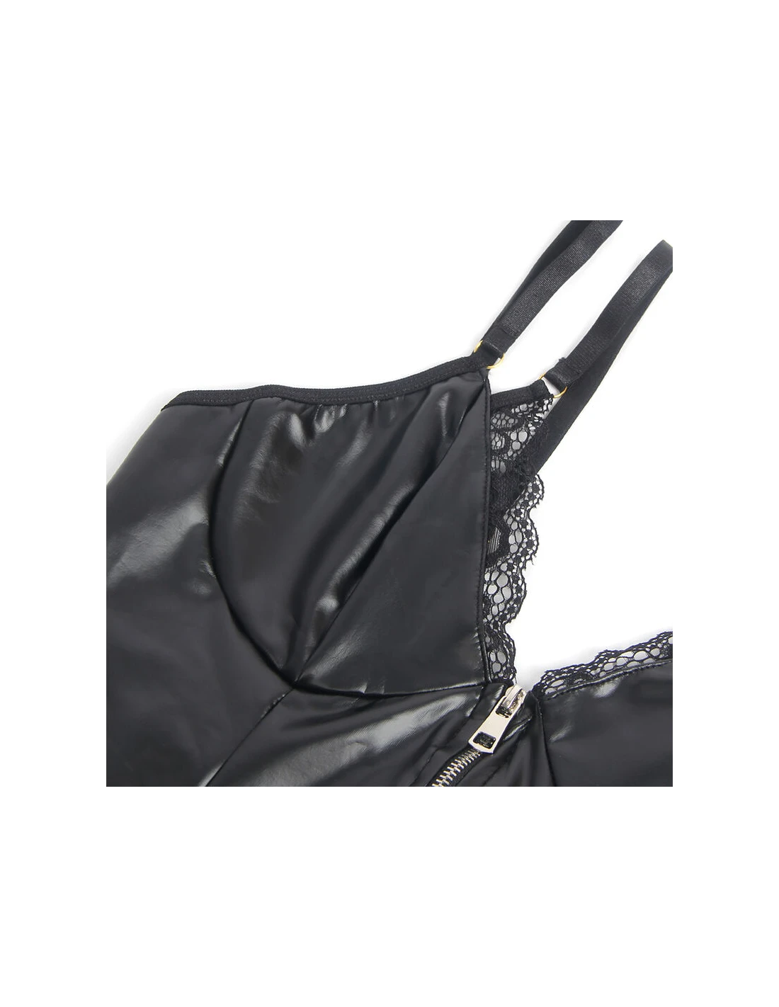 El Conjunto de Lencería Negra con Encaje, Acabado en Cuero PU, Ligueros y Cremallera de SUBBLIME es la prenda ideal para quienes buscan destacar con confianza y estilo. Dale un giro seductor a tu lencería y siéntete increíblemente empoderada con esta pieza exclusiva.