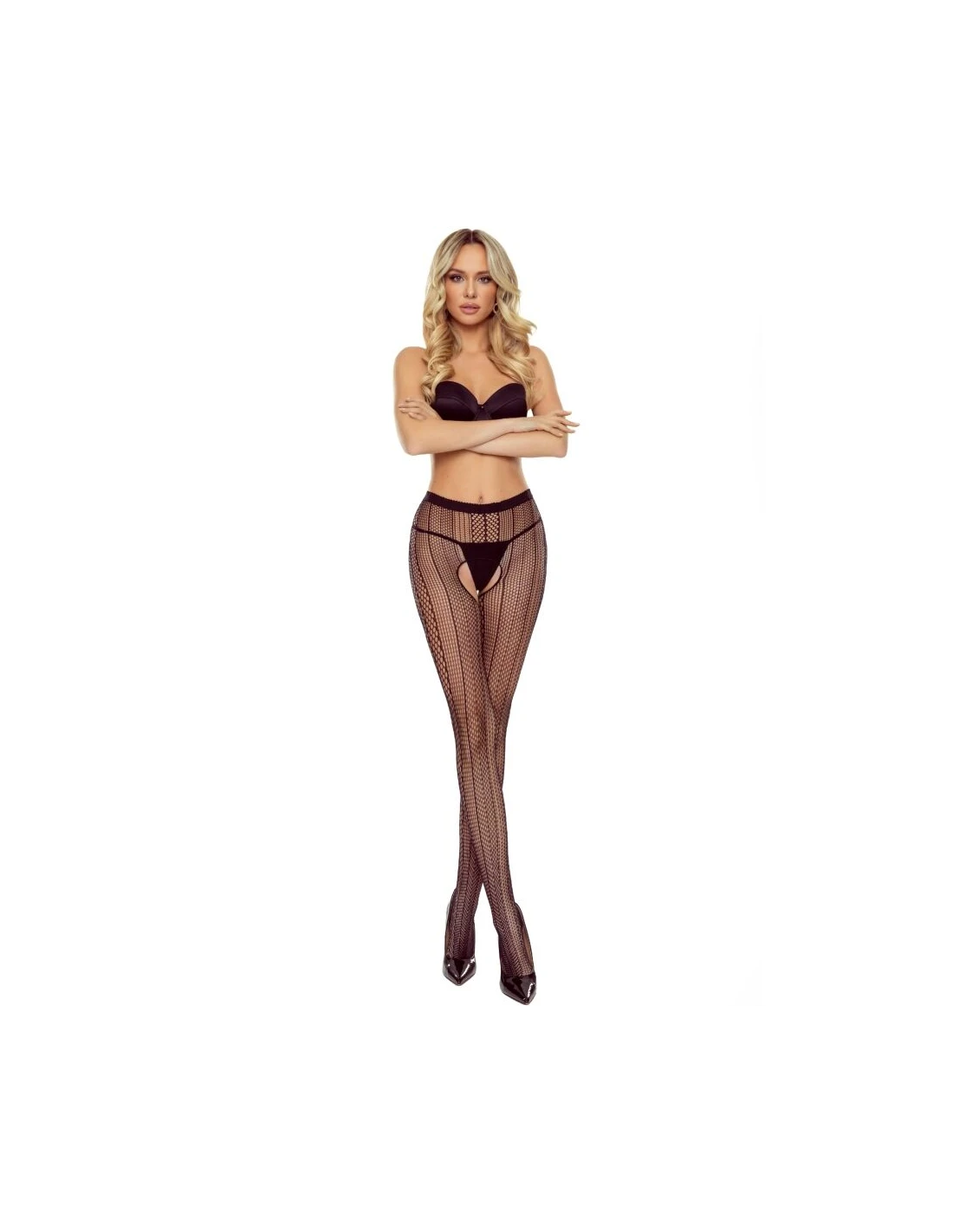 El detalle más distintivo de este modelo es su zona íntima abierta crotchless, cuidadosamente diseñada para aportar un toque atrevido sin renunciar al estilo ni a la elegancia. Esta apertura estratégica no solo añade un componente altamente erótico, sino que también convierte estas medias en una prenda ideal tanto para sorprender en ocasiones especiales como para elevar la experiencia en la intimidad sin necesidad de retirarlas.