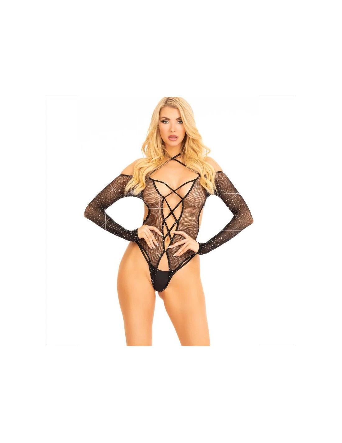 Descubre la fusión de lujo y sensualidad con nuestro deslumbrante body sin entrepierna de rejilla, adornado con exquisitos diamantes de imitación que añaden un toque de brillo deslumbrante. Este diseño cautivador combina la transparencia provocativa de la rejilla con la elegancia atemporal de la pedrería, creando una pieza única que eleva tu feminidad con un toque de glamour y estilo audaz.