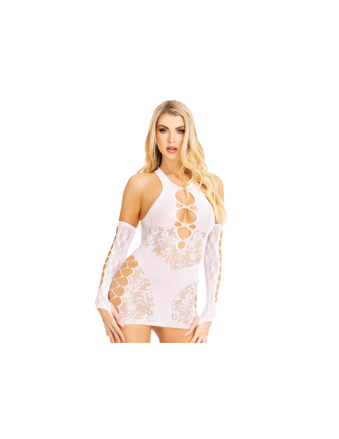 LEG AVENUE - SET MINIVESTIDO & GUANTES BLANCO